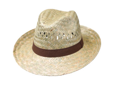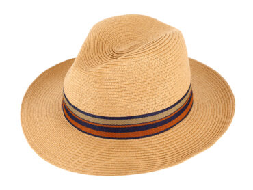 Strohhut Fedora mit braunem Ripsband