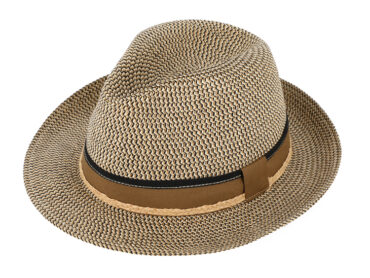 Strohhut Fedora mit Kunstlederband