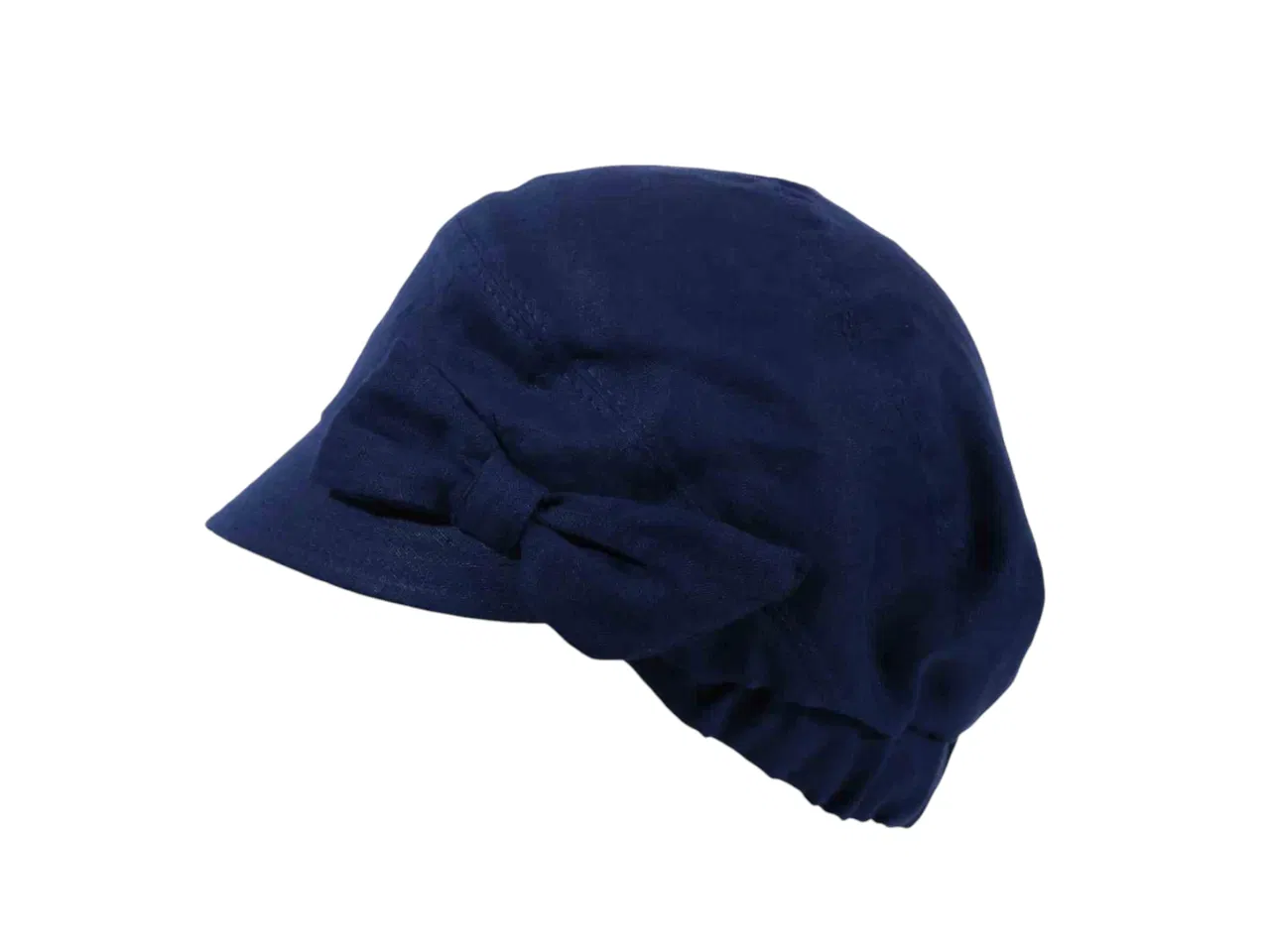 Die Damen Ballonmütze aus Leinen präsentiert sich mit einer verspielten, leicht voluminösen Form, die dank des elastischen Gummizugs auf der Rückseite stets optimal sitzt. Der weiche Schirm bietet angenehmen Sonnenschutz, während die dekorative Schlaufe an der Seite einen femininen Akzent setzt.