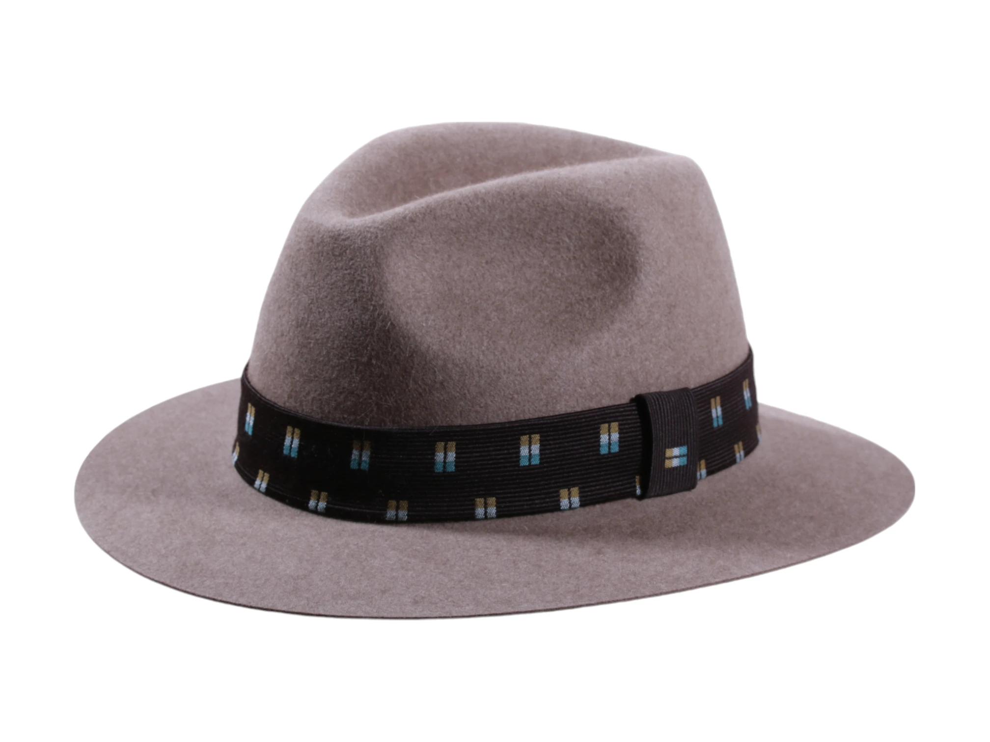 Mit dem Fedora Traveler “Nature by Nature” erleben Sie ein einzigartiges Hutdesign, das pure Natur widerspiegelt. Dieser exklusive Fedora wird aus 100% ungefärbtem Biberfilz gefertigt, einem der hochwertigsten Filzmaterialien, das für seine Langlebigkeit, Weichheit und wasserabweisenden Eigenschaften bekannt ist. Der naturbelassene Look dieses Hutes, kombiniert mit einem feinen, gemusterten Hutband in den Farben Braun oder Türkis, verleiht Ihrem Stil eine dezente, aber dennoch markante Note.