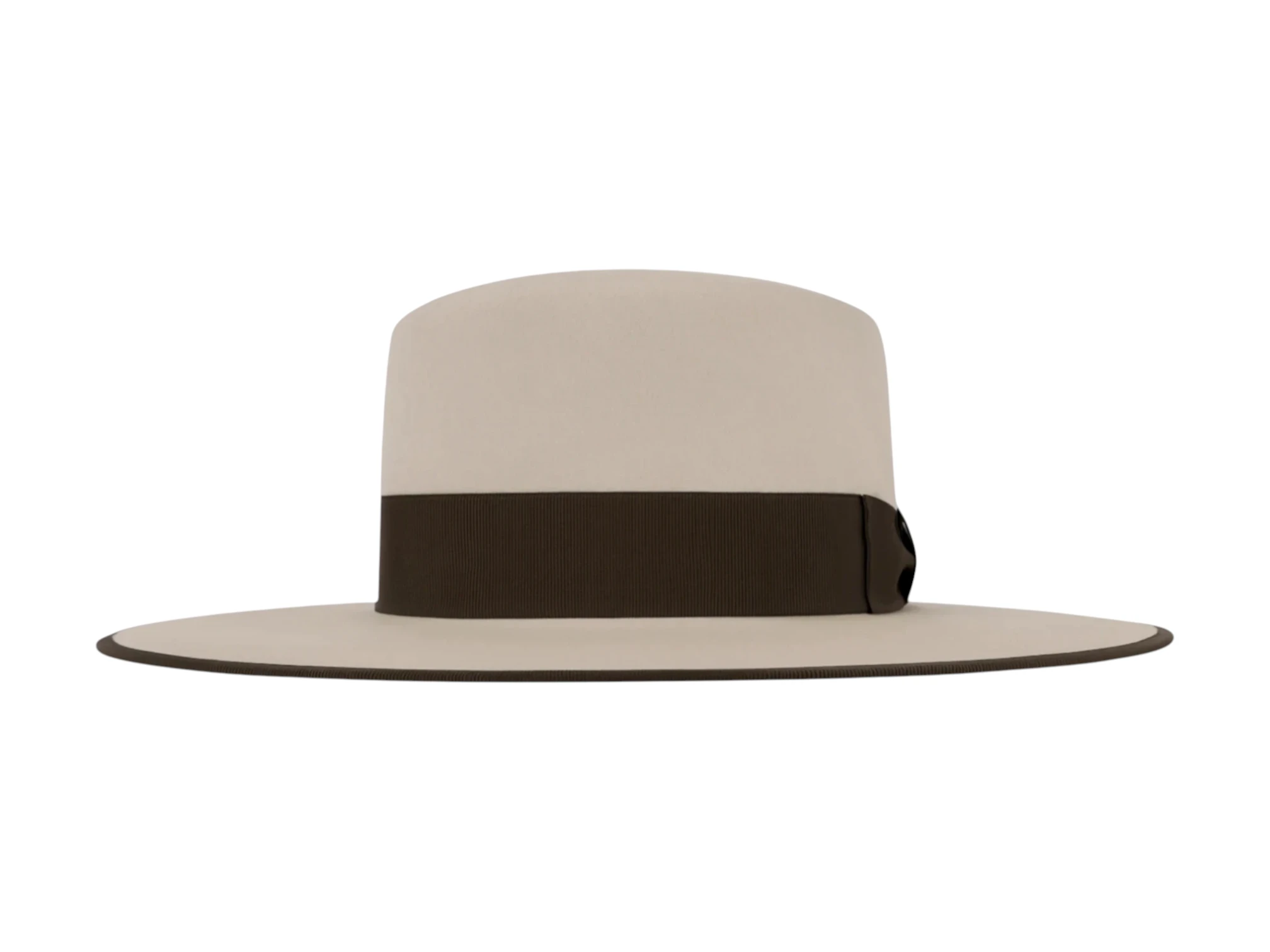 Gefertigt aus feinstem Premium-Biberfilz, zeichnet sich dieser Hut durch seine außergewöhnliche Geschmeidigkeit, Strapazierfähigkeit und wasserabweisende Struktur aus. Die edle Garnitur aus hochwertigem Rebsband ist farblich wählbar – mit breiter Masche oder flacher Schleife. Innen überzeugt der Hut durch ein Kalbsleder-Schweißband der Luxusklasse – angenehm zu tragen, auch bei längeren Westernritten oder sommerlichen Events, dank ungefüttertem, atmungsaktivem Innenraum.