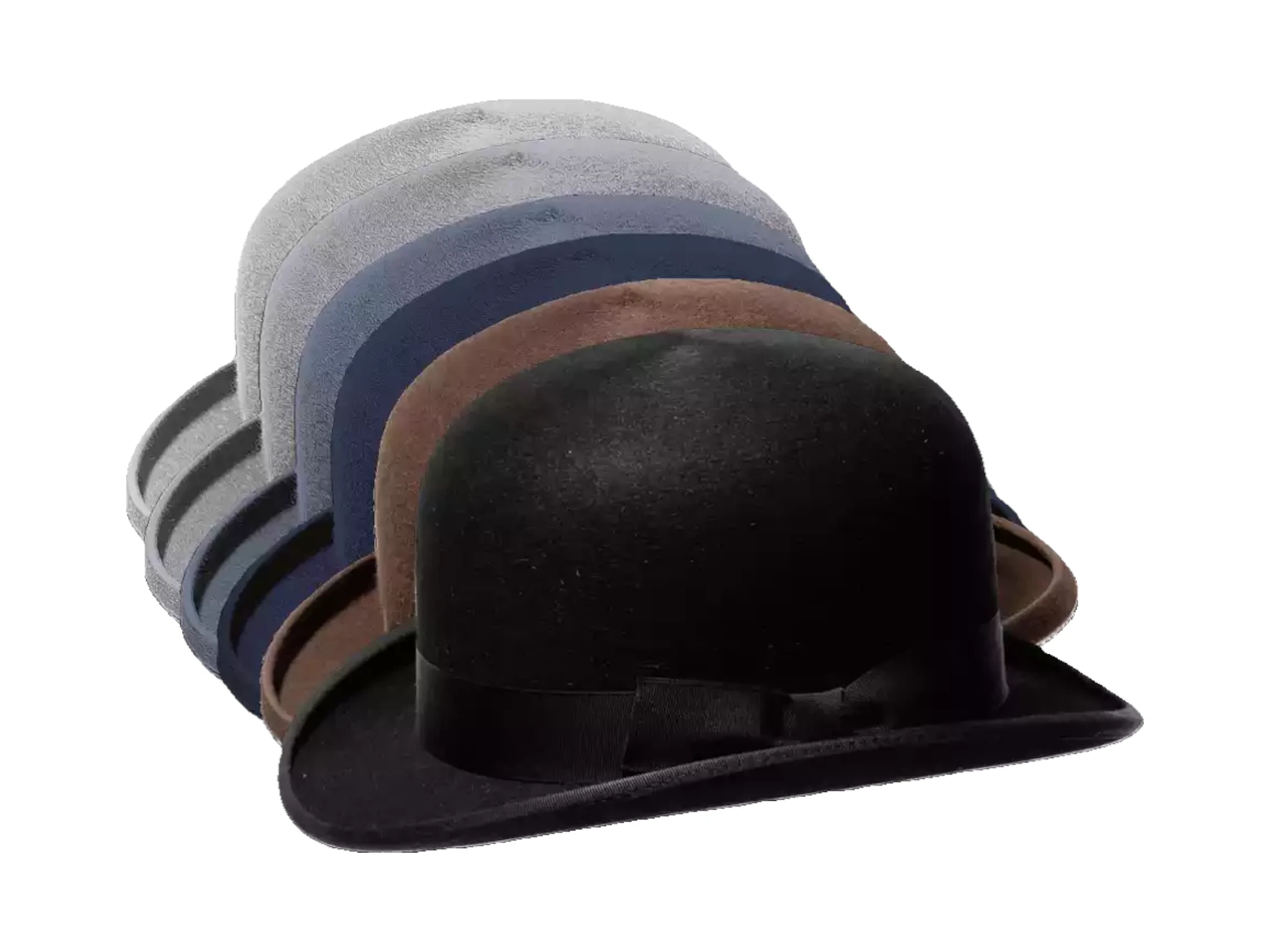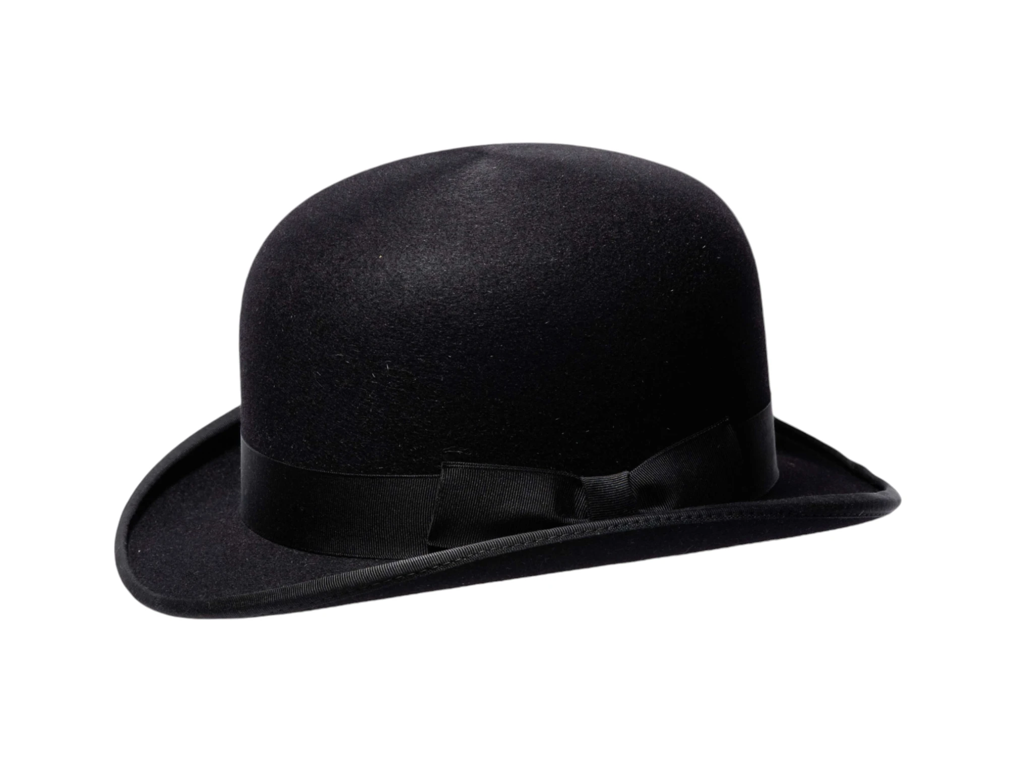 Die Bowler/Melone Classics ist aus 100% steifem Haarfilz gefertigt, was ihr eine besonders formstabile und elegante Erscheinung verleiht. Das schmale Rebsband mit passender Masche unterstreicht den klassischen Look, während die steife Struktur die markante Form dieses ikonischen Hutes perfekt bewahrt. Die Bowler ist seit dem 19. Jahrhundert ein fester Bestandteil der britischen Mode und symbolisiert sowohl formelle Eleganz als auch einen gewissen Retro-Charme.