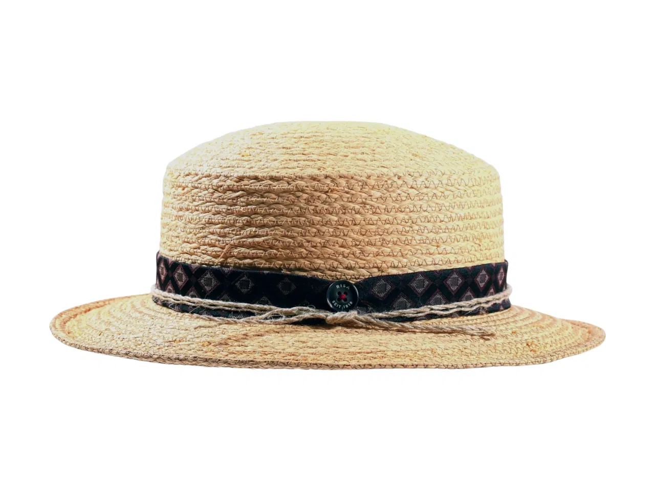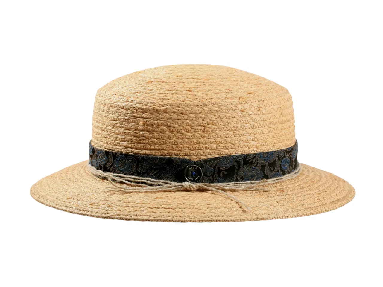Ein Must-have für die sonnige Jahreszeit: Der Damenhut Cloche Raffia mit Hanfschnur verbindet rustikalen Charme mit elegantem Understatement. Mit seinem kompakten, femininen Cloche-Design und der flachen, rund verlaufenden Krempe ist dieser Hut ein stilsicherer Begleiter für heiße Tage. Der naturfarbene Raffia-Strohton wird durch das kunstvoll gemusterte Stoffband und die dekorative Hanfschnur akzentuiert – wahlweise mit Romboid– oder Blumen-Muster, jeweils abgerundet durch den ikonischen „Risa seit 1919“-Qualitätsknopf. Die fein strukturierte Oberfläche des Hutes und die detailverliebte Garnitur verleihen ihm eine authentisch-handgefertigte Note.