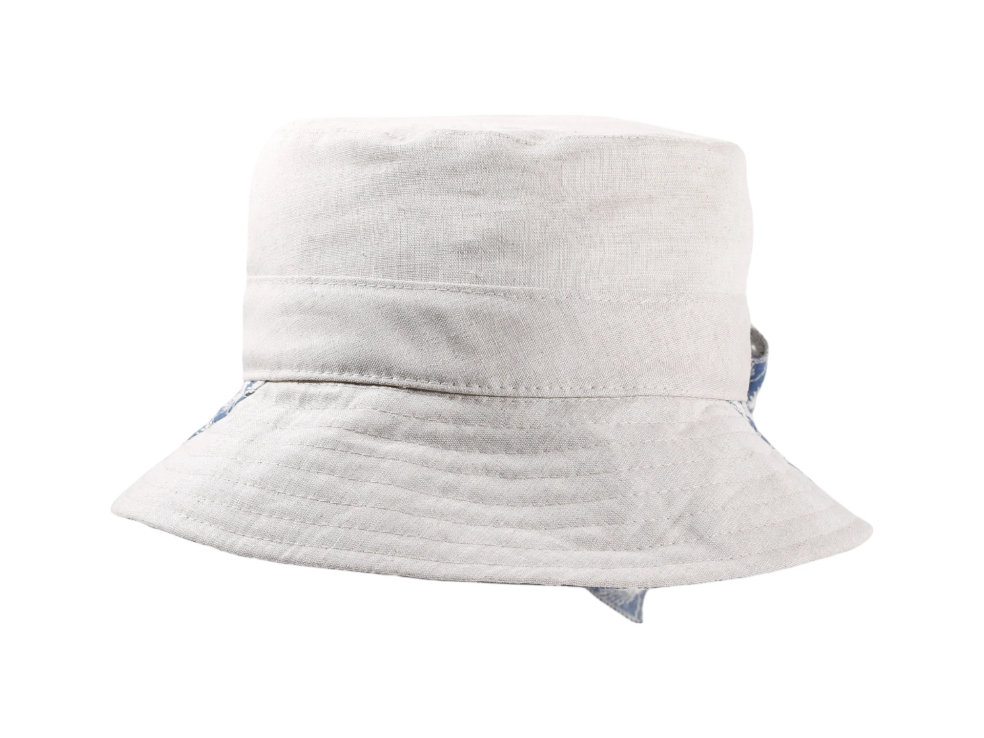 Eigenschaften & Details: Material: 55% Leinen (LI) / 45% Baumwolle (CO) – leicht, atmungsaktiv und hautfreundlich. Farben: Écru mit Garnitur in Jeansblau. Garnitur: Stilvolles Band aus Jeansblau mit dekorativer Masche. Größen: 56 (55-56), 58 (57-58). Design: Klassische Cloche-Form mit dezent geschwungener Krempe und elegantem Garniturband mit Masche.