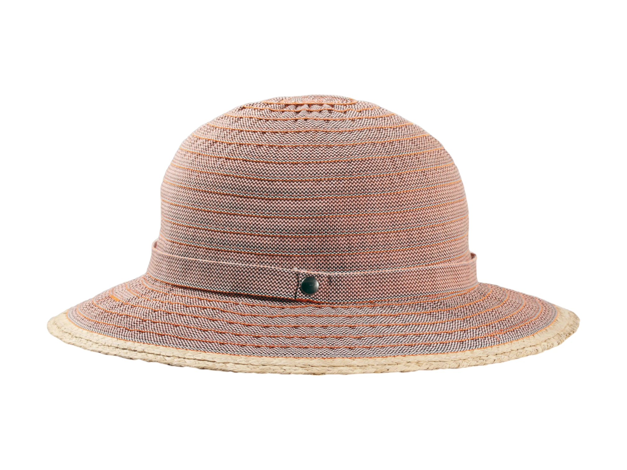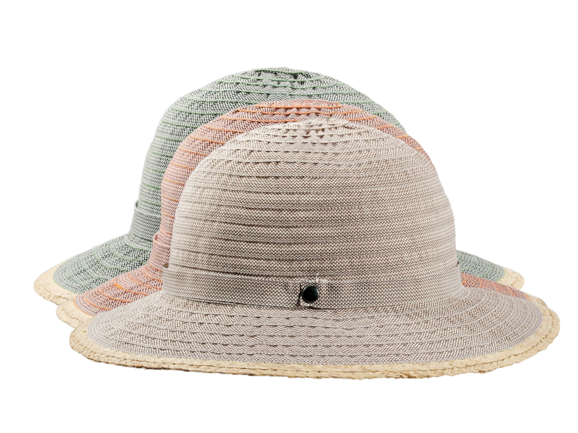 Dieser elegante Cloche besticht durch seine feine Bandstruktur, die dem Hut einen luftigen, modernen Look verleiht. Der zarte Rand aus Raffia unterstreicht seine natürliche Note, während das Hutband mit edlem Zierknopf dem Modell eine luxuriöse Ausstrahlung verleiht. Erhältlich in den Farben Hellbeige, Orange und Hellgrün, fügt sich dieser Hut perfekt in jede sommerliche Garderobe ein. Ein stilvolles Accessoire, das Funktionalität und Mode mühelos vereint.