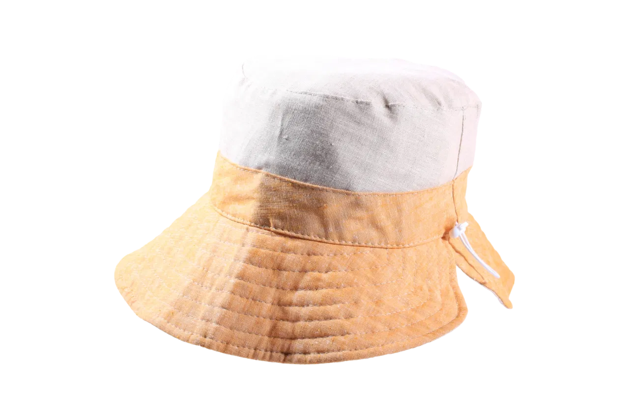Mit seiner markanten Silhouette und dem charmanten Farbblock-Design in Gelb, Nougat oder Rot begeistert dieser Stoffhut modebewusste wie praktische Träger:innen gleichermaßen. Der breite Rand schützt zuverlässig vor der Sonne und der integrierte Gummizug am Hinterkopf sorgt für optimalen Halt, ganz ohne einzuengen. Die Mischung aus Leinen und Baumwolle verleiht dem Modell eine angenehme Leichtigkeit, ist atmungsaktiv und ideal für heiße Sommertage.