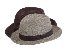 - Garnitur: gestreiftes, sandfarbiges Hutband aus Rebs mit Einfassung der Krempe