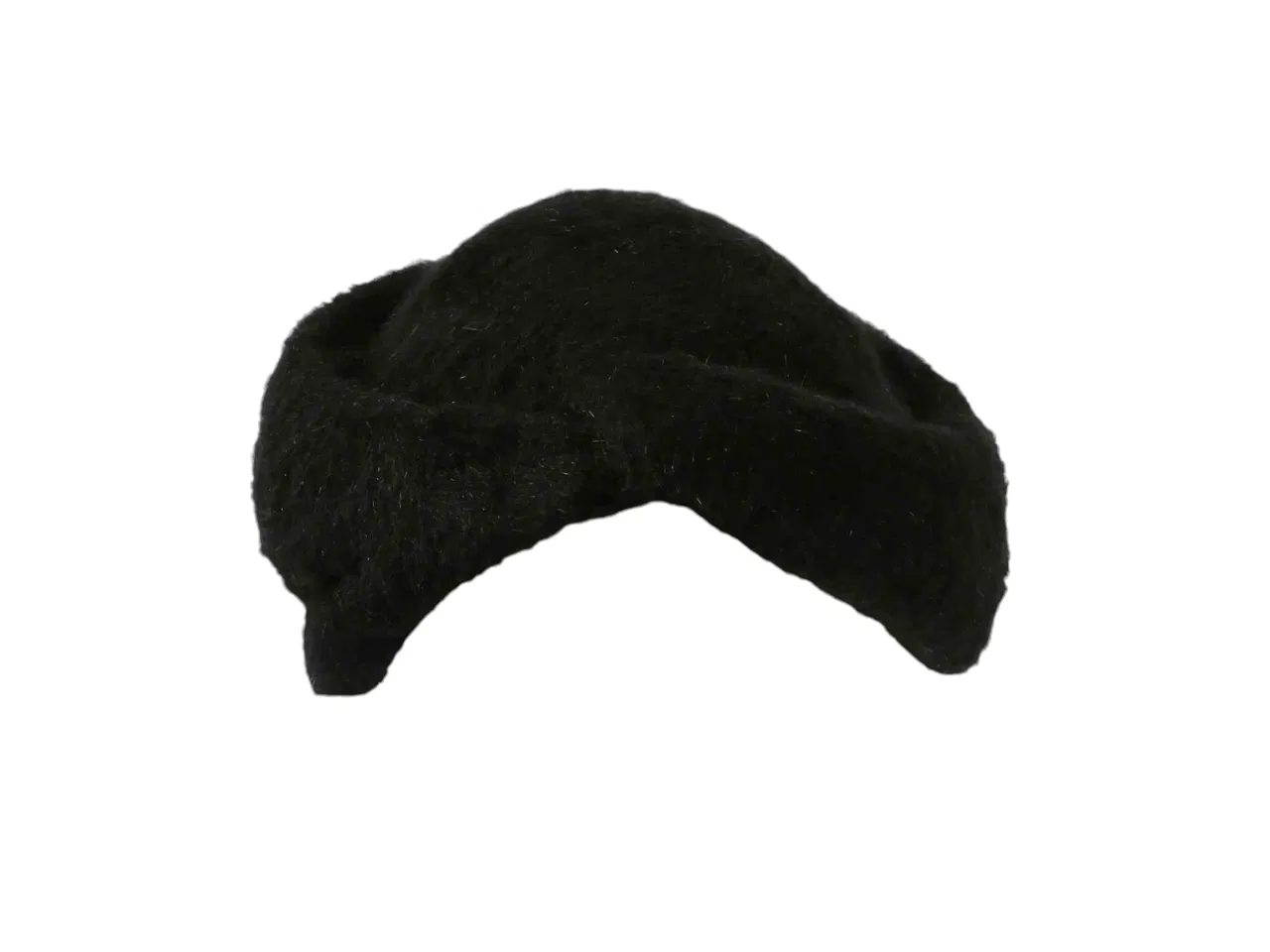 Tauchen Sie ein in die Welt der Eleganz und des Stils mit unserer Damen Kappe aus Melousine. Diese winterliche Kappe aus hochwertigem Haarfilz ist in der zeitlosen Farbe Schwarz erhältlich und erinnert an einen Turban, was ihr ein freches und frisches Aussehen verleiht.