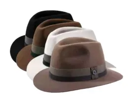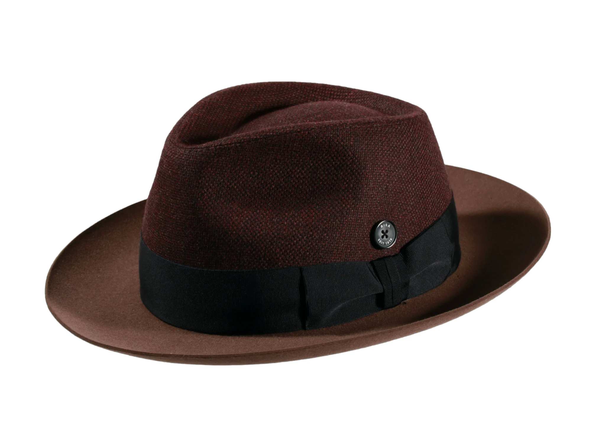 Der Fedora aus Wollstoff und Haarfilz aus der Premium Freiamt Herbst- und Winter-Kollektion vereint traditionelle Handwerkskunst mit moderner Vielseitigkeit. Seine Besonderheit liegt in der klappbaren Krempe: Tragen Sie den Hut vorne nach unten geklappt im ikonischen Bogart-Stil oder rundherum nach oben geschlagen als eleganten Fedora. Ein Meisterstück, das Stil und Flexibilität verbindet.