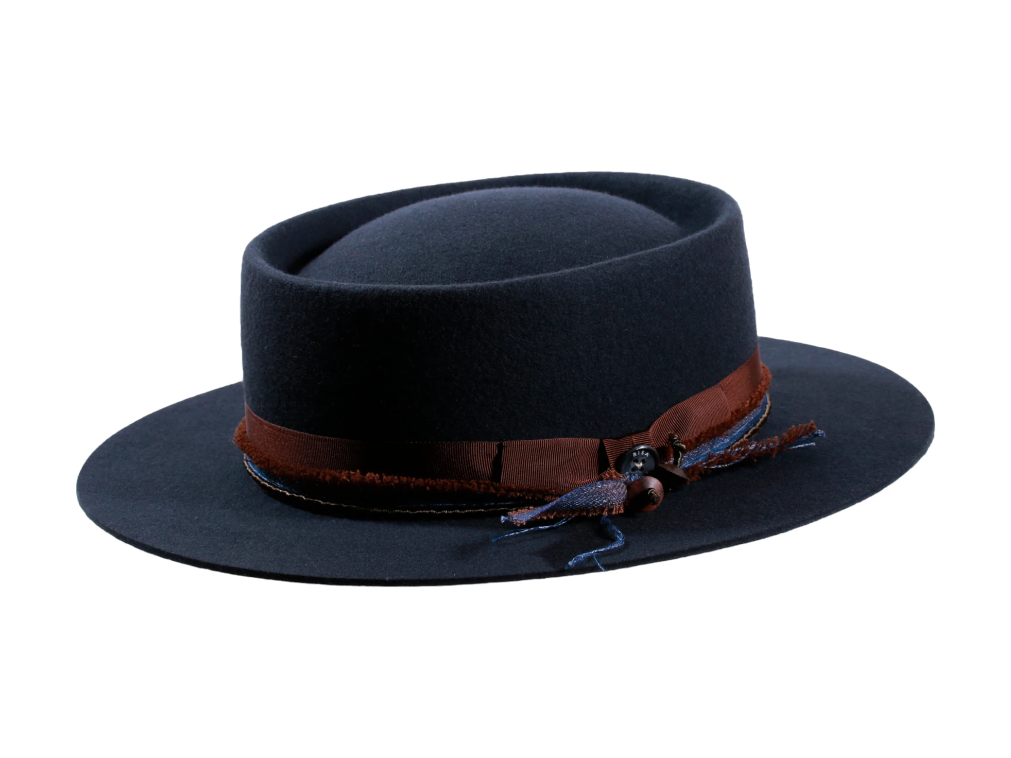 Die Garnitur ist ein Blickfang für sich: ein edles Rebs-Hutband im Jeanslook, kombiniert mit Ebenholzperlen und dem traditionsreichen „Risa seit 1919“-Knopf. Diese Details machen jeden Hut zu einem unverwechselbaren Unikat. Innen sorgt ein sauber eingenähtes Textilinnenband für Tragekomfort auf höchstem Niveau.