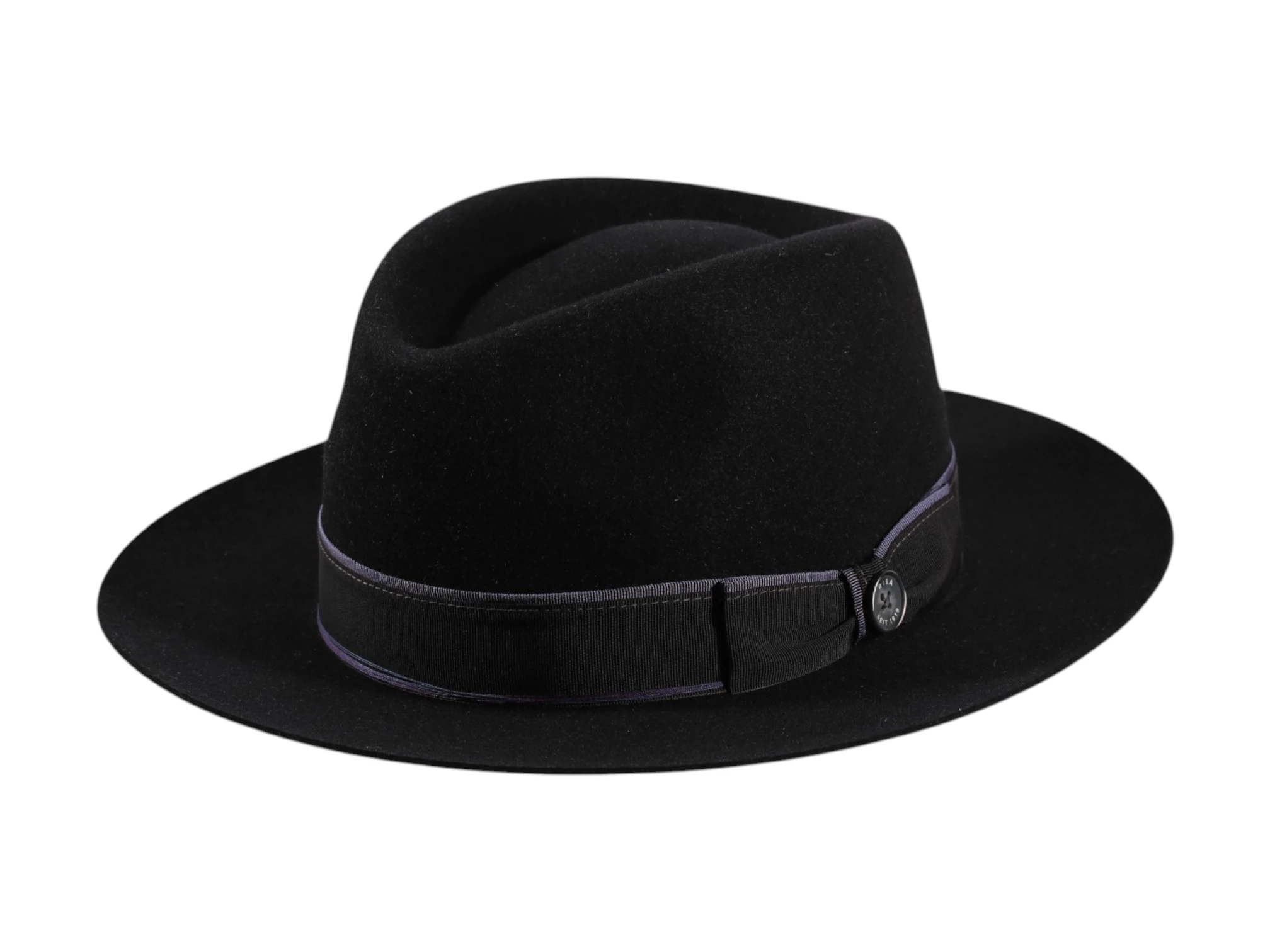 Der Fedora Haarfilz „Paspel und Garn“ vereint zeitlose Hutmode mit handwerklicher Raffinesse. Mit seiner ausgewogenen Krone, der elegant geschwungenen Krempe und den feinen Details verkörpert er höchste Schweizer Hutkultur.