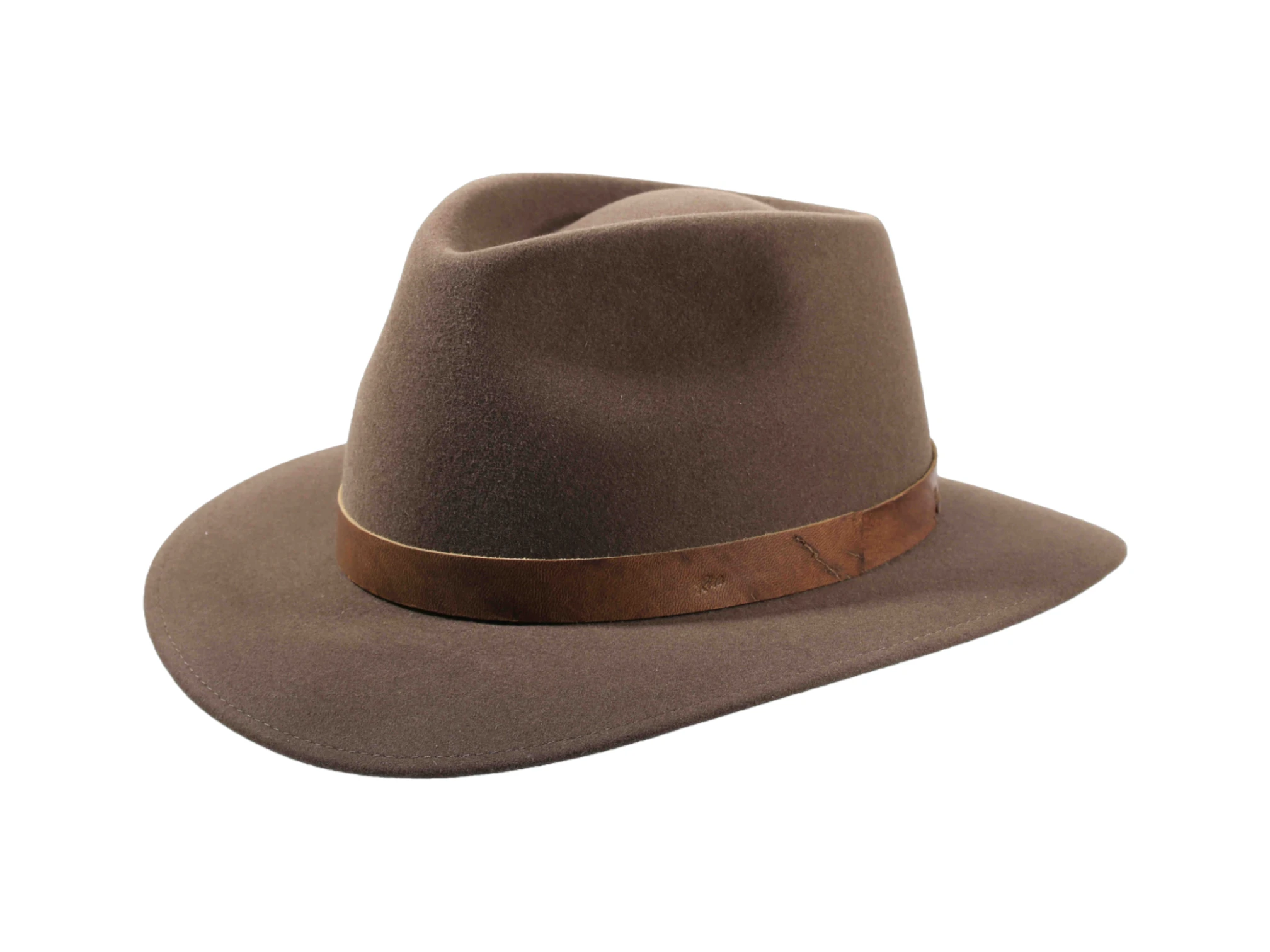 Ist der Hut wetterfest? Ja, Haarfilz ist von Natur aus wasserabweisend und bietet Schutz bei leichtem Regen.