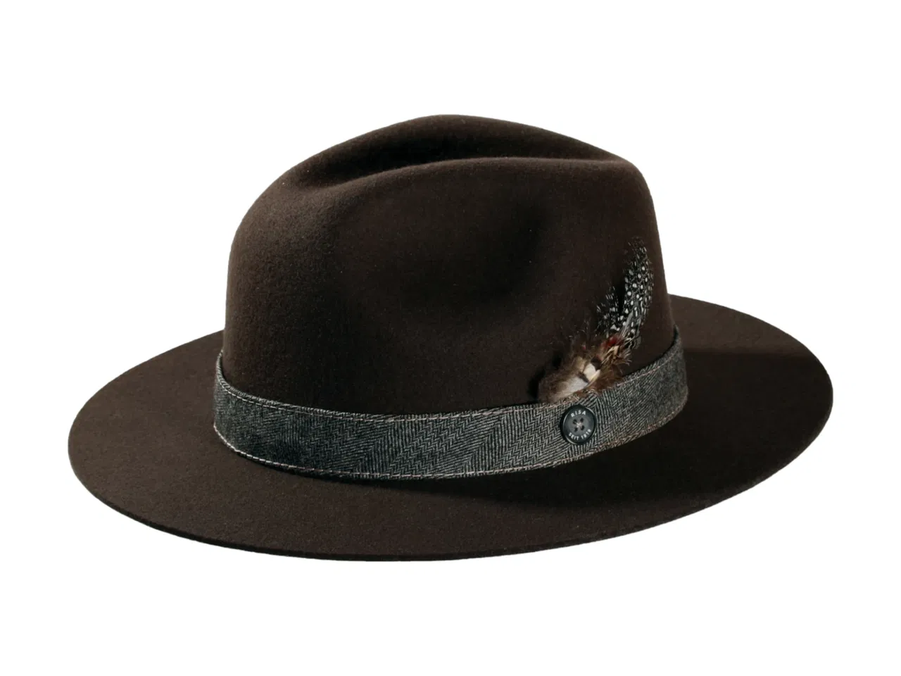 Der Filzhut im Fedora Stil “Rugged Herringbone” vereint rustikale Eleganz mit handwerklicher Perfektion. Hergestellt aus 100 % hochwertigem Wollfilz und verziert mit einem stilvollen Herringbone-Hutband und Federn, bietet dieser Hut eine einzigartige Kombination aus Tradition und modernem Stil. Perfekt für Kunden, die Wert auf Handwerkskunst und exklusive Details legen. Handgefertigt in der Schweizer Hutmanufaktur Risa, ist dieser Hut ein wahres Meisterwerk der Hutmacherei.