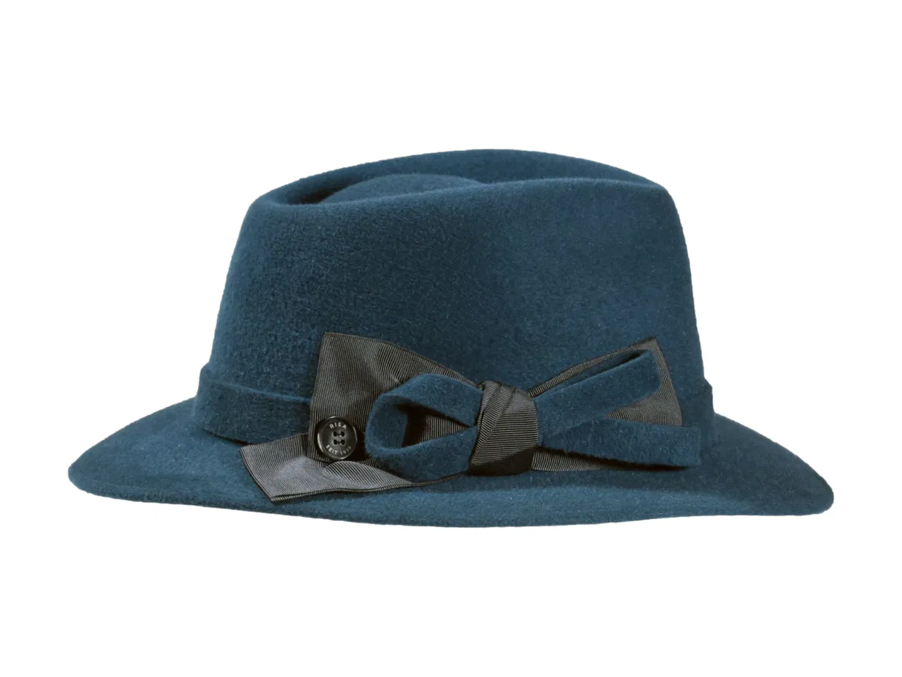 Frage: Ist der Hut in anderen Farben erhältlich? Antwort: Der Fedora City ist in den Farben Petrol und Blaugrün erhältlich, sowohl in schmalrandiger als auch breitrandiger Ausführung.