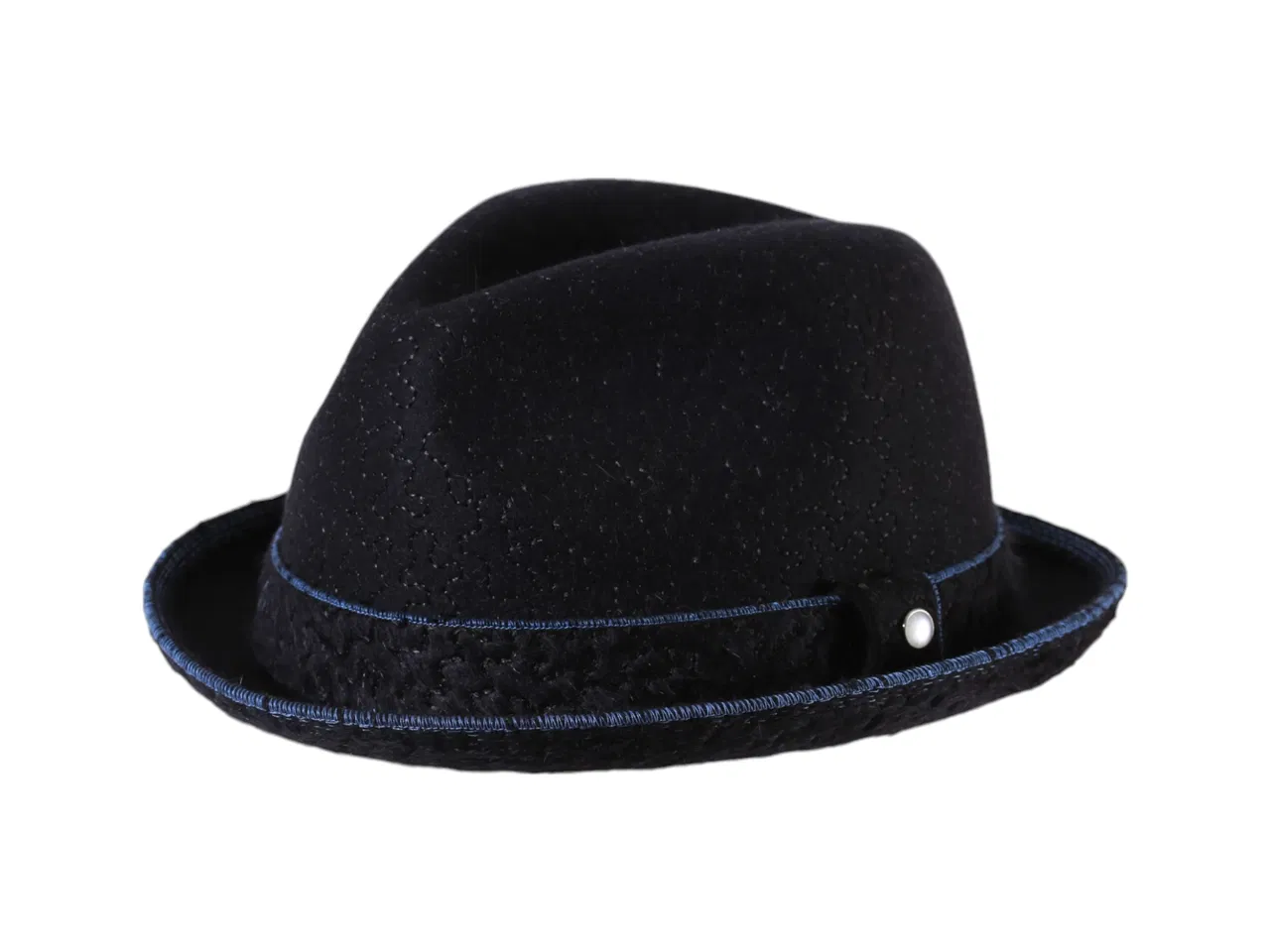 Der bestickte Zierfaden in Kontrastfarbe macht diesen Hut zu einem echten Hingucker. Er ist in zwei stilvollen Farbkombinationen erhältlich: Schwarz mit Zierfaden in Blau oder Mittelbeige mit Zierfaden in Braun. Die Garnitur besteht aus einem edlen Haarfilzband mit Traverse, das durch den klassischen Qualitätsknopf akzentuiert wird. Jedes Exemplar wird individuell auf Bestellung in der Schweizer Hutmanufaktur Risa gefertigt und unterstreicht so die Exklusivität und die besondere Sorgfalt, die in jedem Hut steckt.
