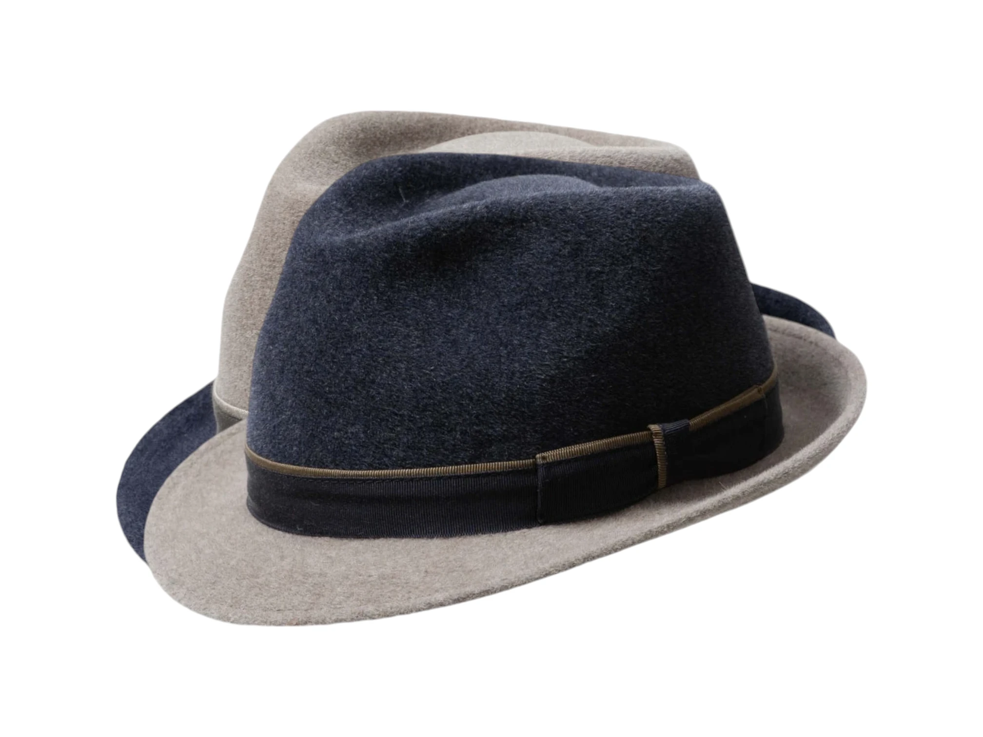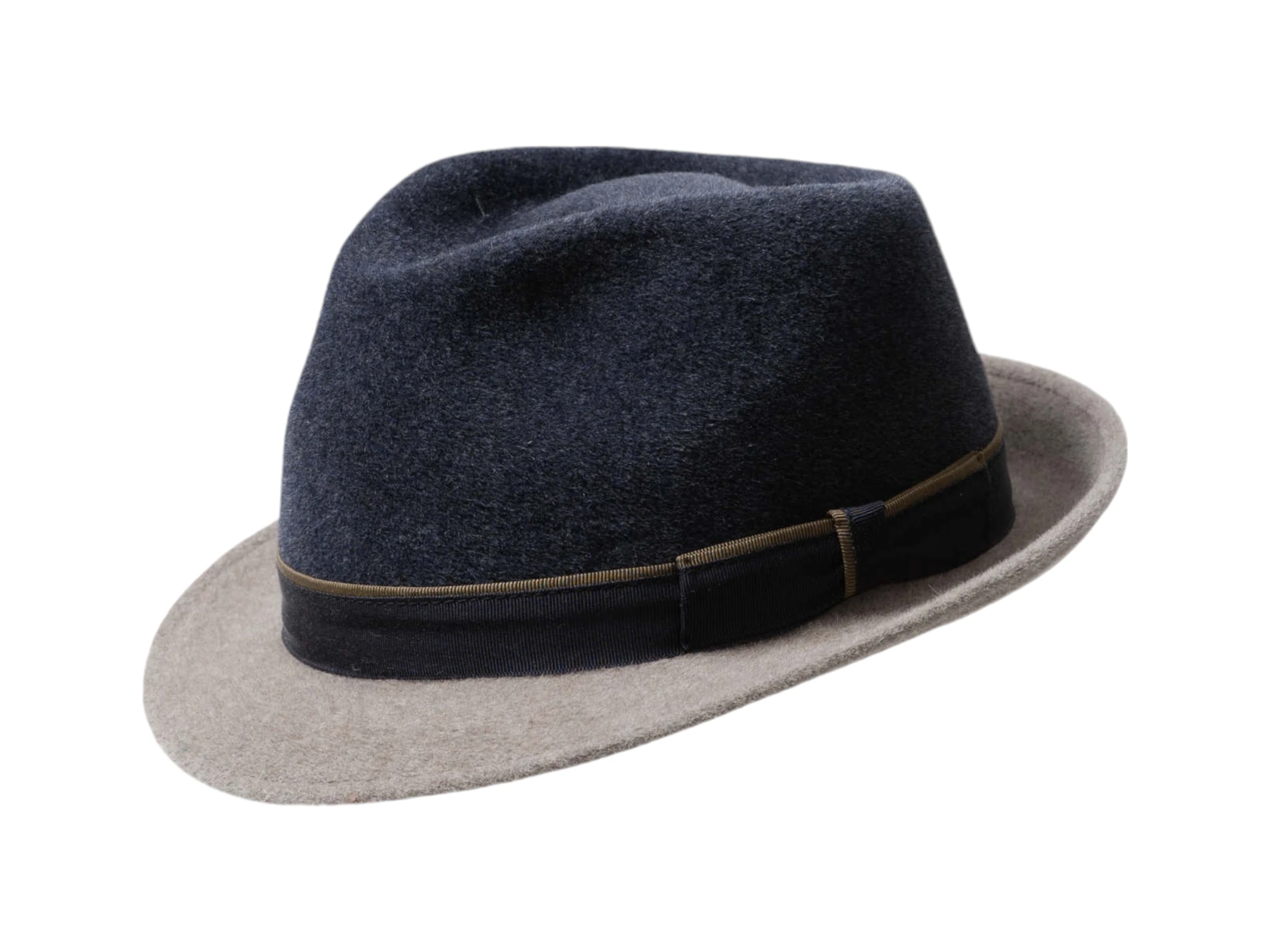 Der Trilby 2-Pieces Marine/Beige oder Beige/Marine ist ein trendiger Hut, der Ihrem Look eine elegante Note verleiht. Mit seiner zweifarbigen Kombination aus Marine und Mittelbeige setzt er modische Akzente und unterstreicht Ihren individuellen Stil auf gekonnte Weise. Dieser Hut ist die perfekte Wahl für modebewusste Frauen und Männer, die Wert auf Qualität und Design legen. Hochwertiger Haarfilz für besten Tragekomfort