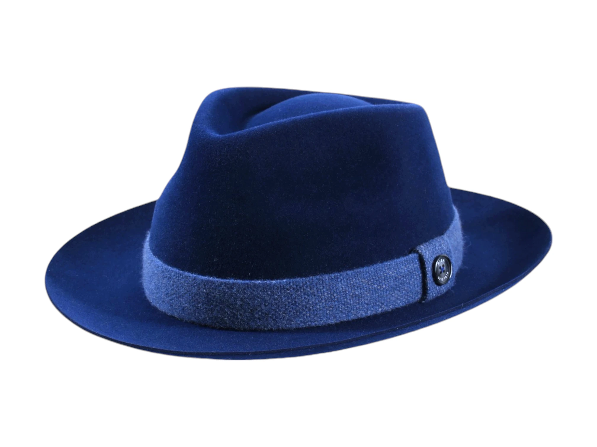 Gefertigt aus luxuriösem 100% Haarfilz Velours vereint er zeitlose Eleganz, modische Vielseitigkeit und höchste Schweizer Handwerkskunst.