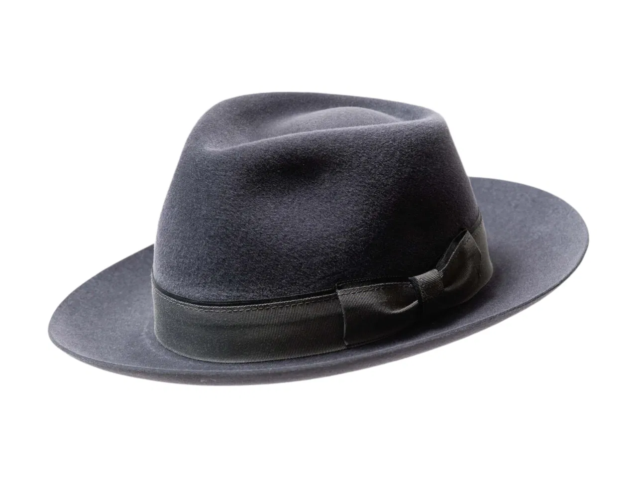 Der Haarfilzhut im Fedora-Stil vereint klassische Eleganz mit moderner Handwerkskunst. Perfekt für stilbewusste Träger, die auf höchste Qualität und Exklusivität setzen. Bestellen Sie jetzt und tragen Sie ein einzigartiges Stück Schweizer Handwerkskunst, das mit seiner stilvollen Optik und dem luxuriösen Tragekomfort überzeugt!