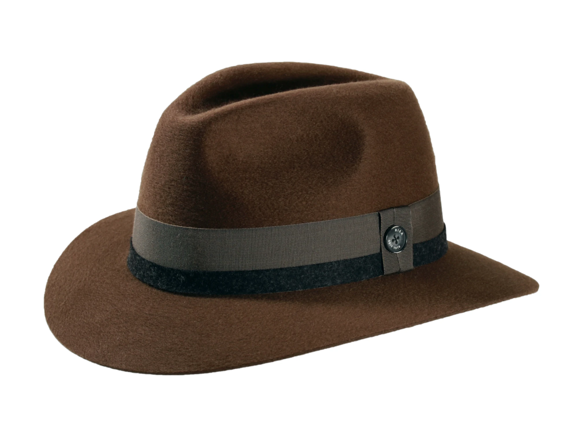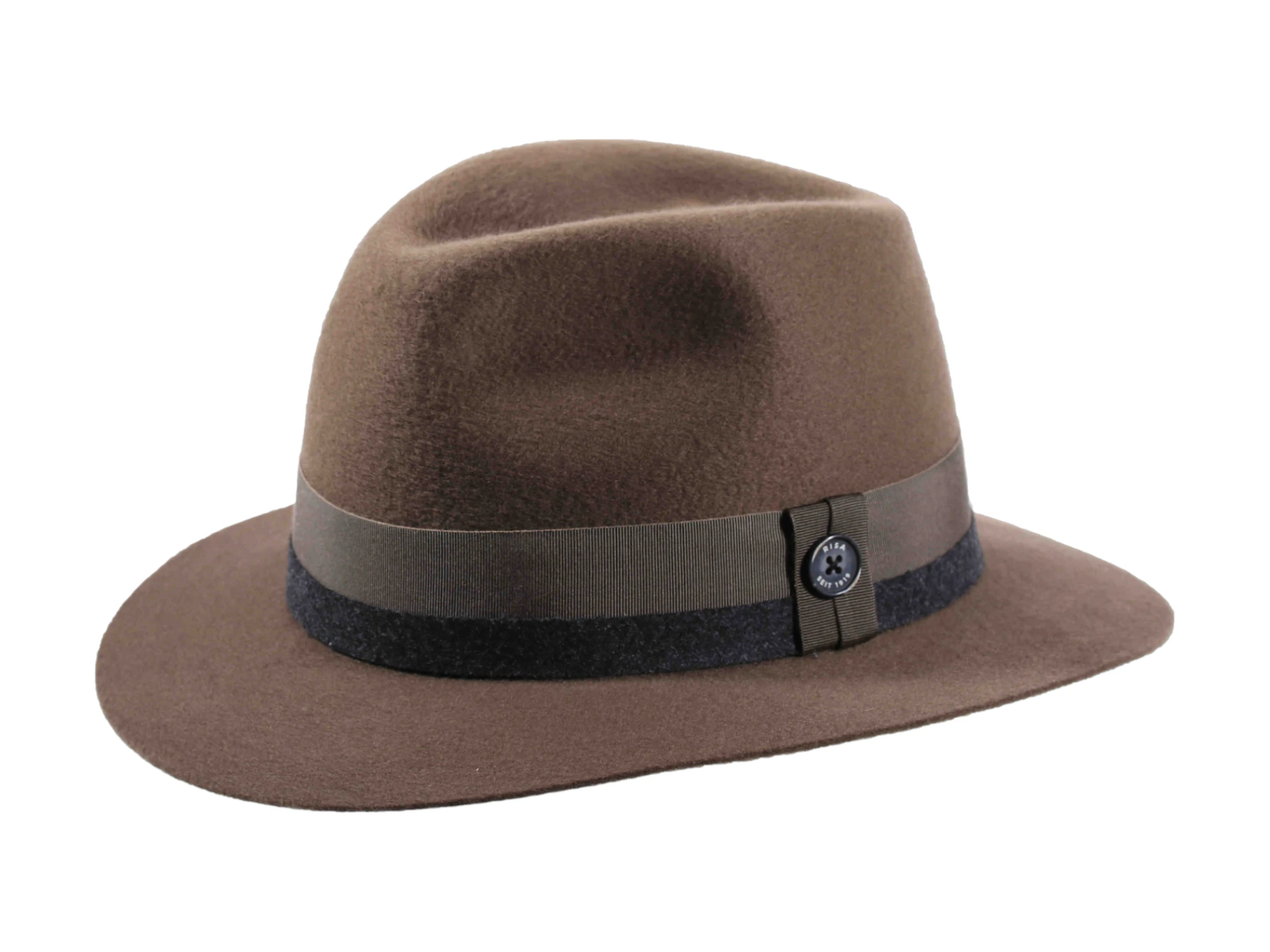 Dieser Hut wird mit größter Sorgfalt in der renommierten Schweizer Hutmanufaktur Risa gefertigt und steht für jahrzehntelange Erfahrung und Tradition. Die Garnitur aus Rebs und Loden, kombiniert mit einem eleganten Qualitätsknopf auf der Traverse, verleiht dem Hut eine luxuriöse Note. Wählen Sie aus den dezenten Farbtönen Schwarz, Hellbeige, Mittelbraun oder Schlamm, um Ihren persönlichen Stil perfekt zu ergänzen. Dieser exklusive Fedora verbindet Luxus, Nachhaltigkeit und Schweizer Handwerkskunst und ist somit ein Must-Have für alle, die Wert auf Qualität und Stil legen