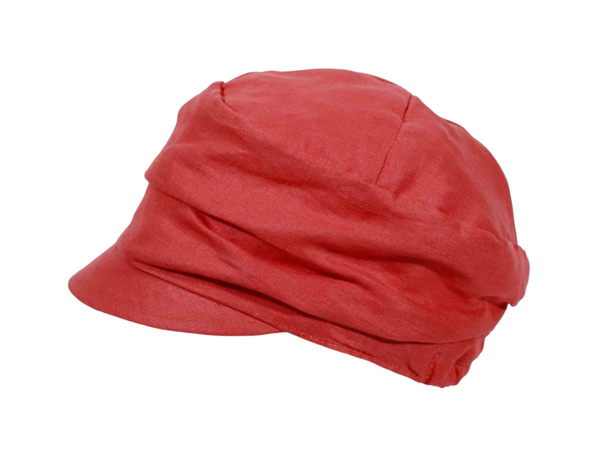 Material: 100% Leinen – luftig, hautfreundlich und kühlend bei Hitze Farbe: Orangerot – lebendig und sommerlich frisch Größen: One Size – elastischer Einsatz für optimalen Sitz Form: Runde Kappe mit sanften Raffungen und schützendem Schirm Garnitur: Ohne zusätzliche Applikationen – minimalistisch und stilvoll