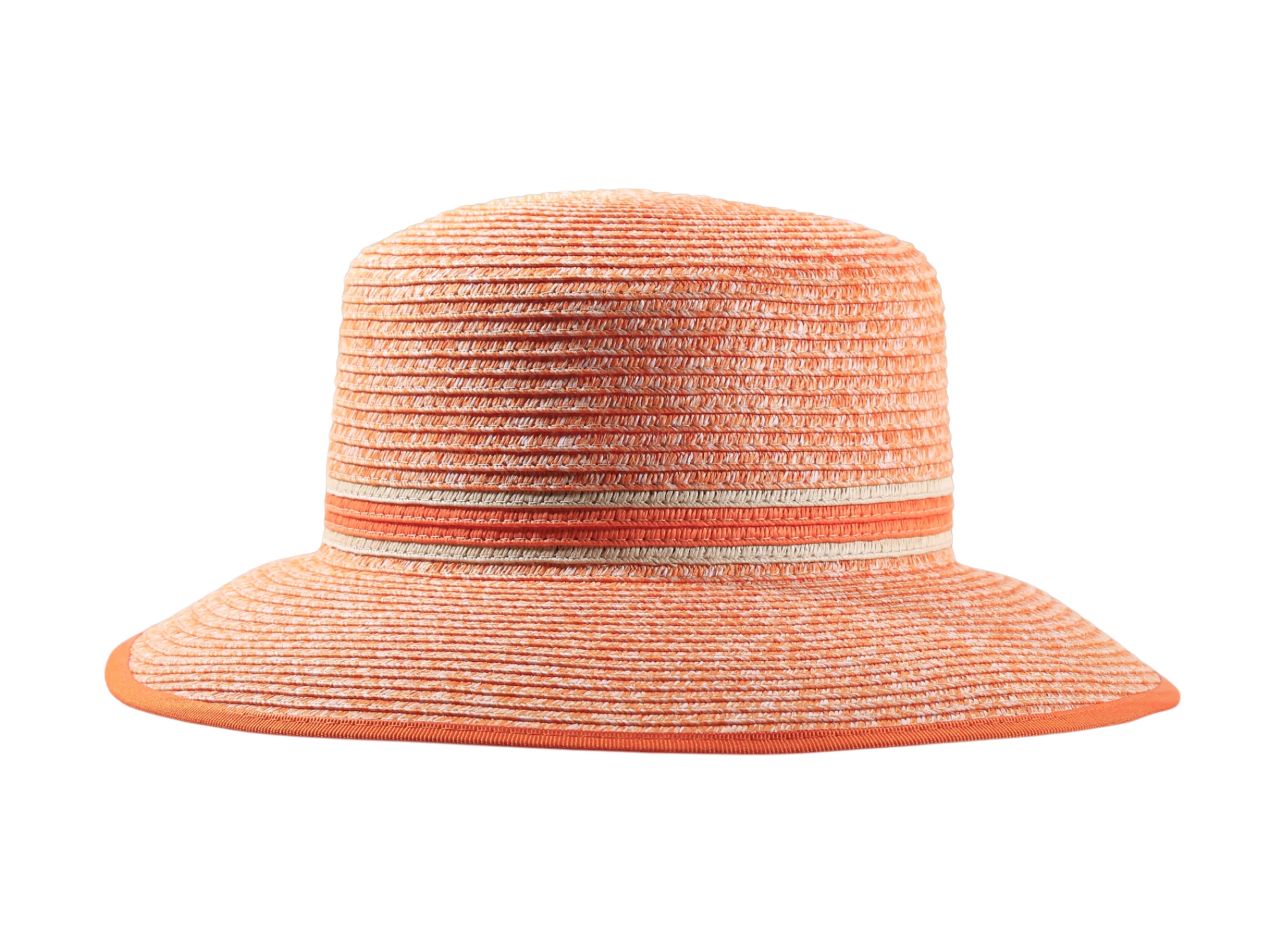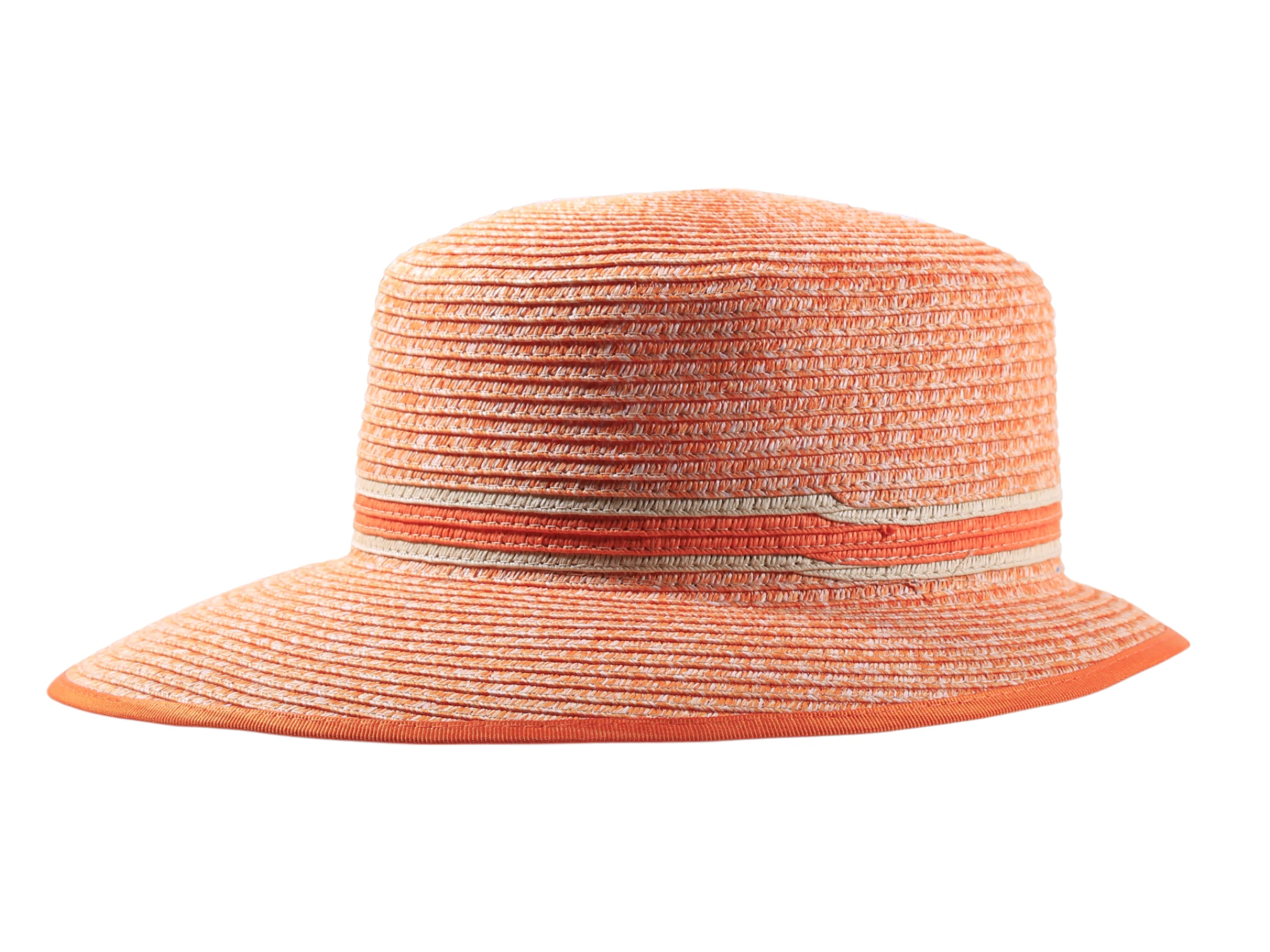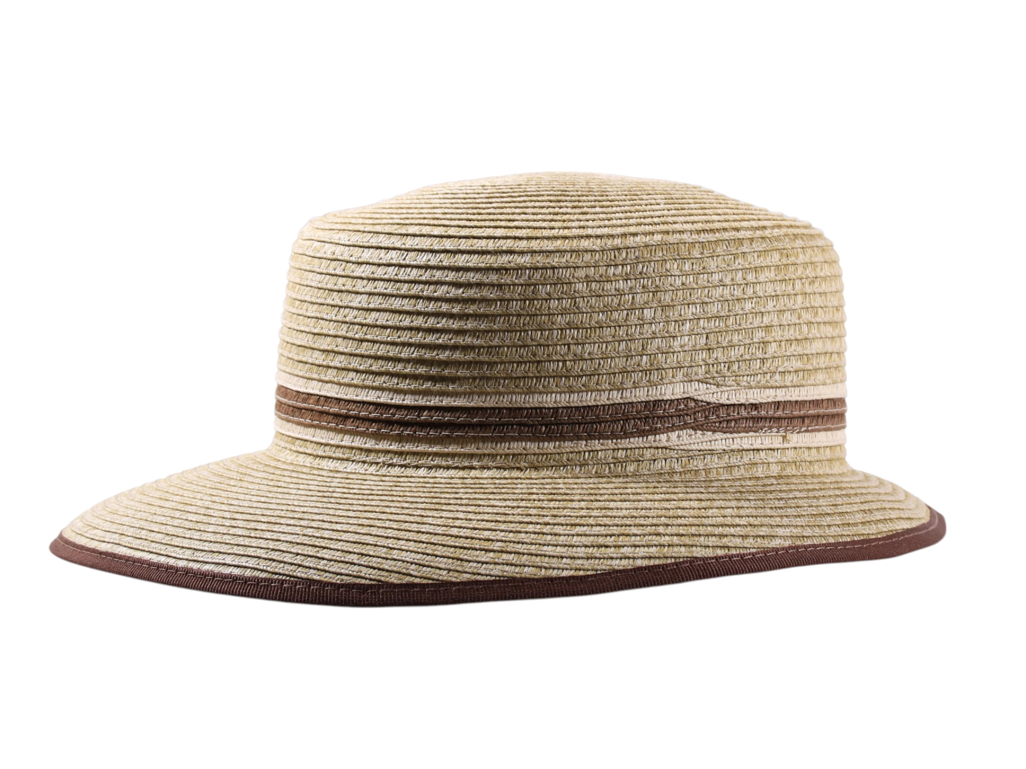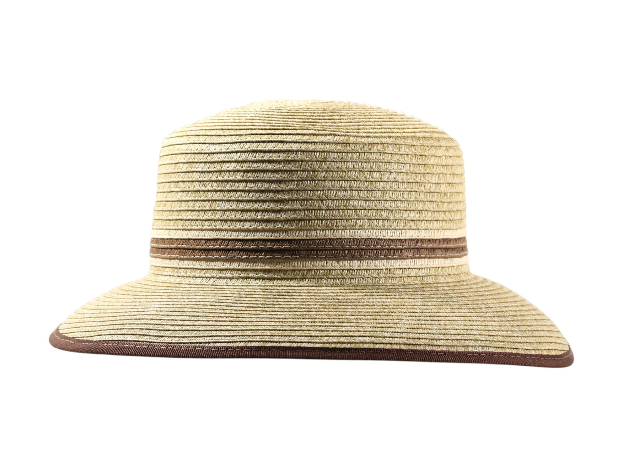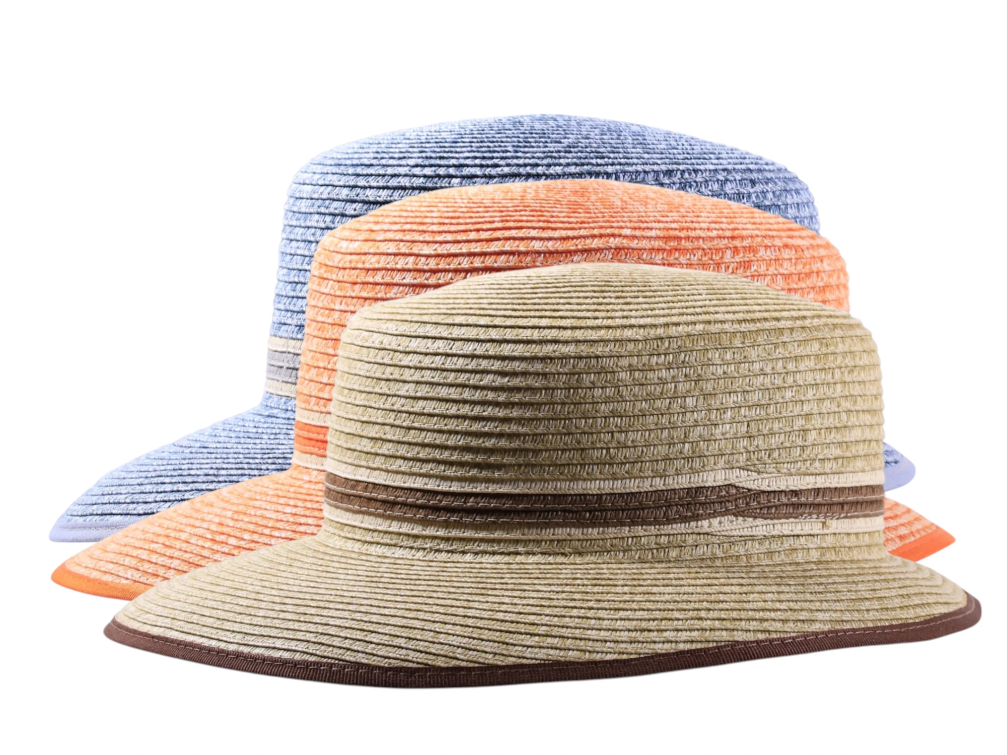 Garnitur: Schmale Kontraststreifen in abgestimmten Farbtönen, die die zarte Struktur des Hutes betonen