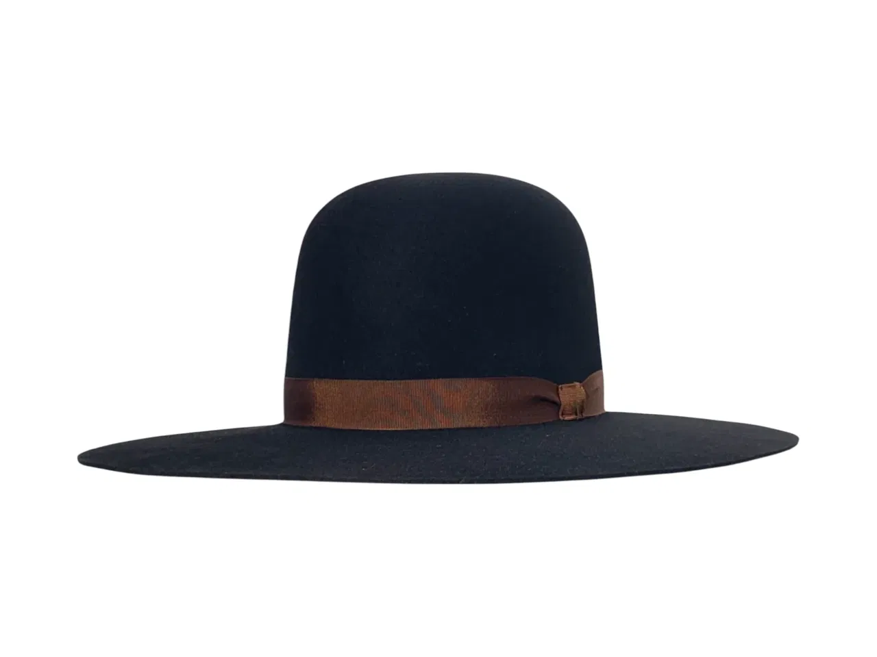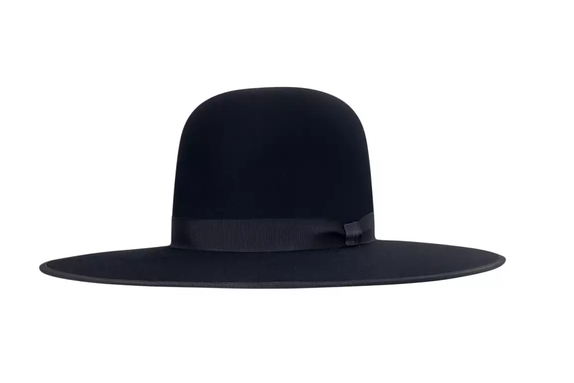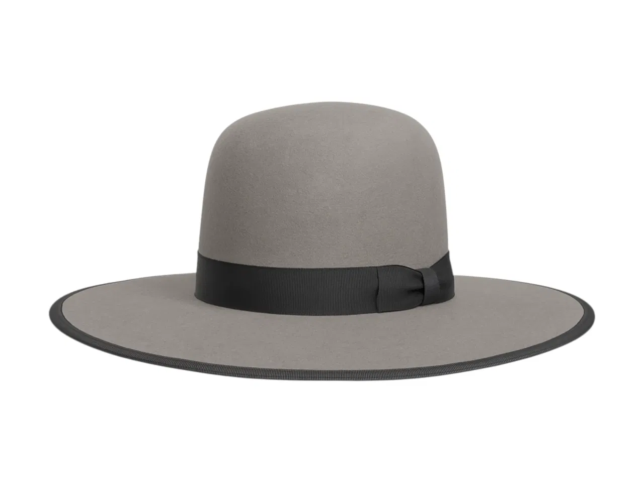Dieser Hut ist eine Hommage an die Pioniere des Wilden Westens und ein Statement für Stilbewusstsein und handwerkliche Perfektion. Der klassische Open-Crown-Stil mit seiner offenen, 13.5 cm hohen Krone und die extrabreite 10.5 cm Krempe verleihen diesem Modell eine unverkennbare Präsenz. Perfekt für Westernreiter, Old West Performer oder alle, die einen Auftritt mit Format schätzen.