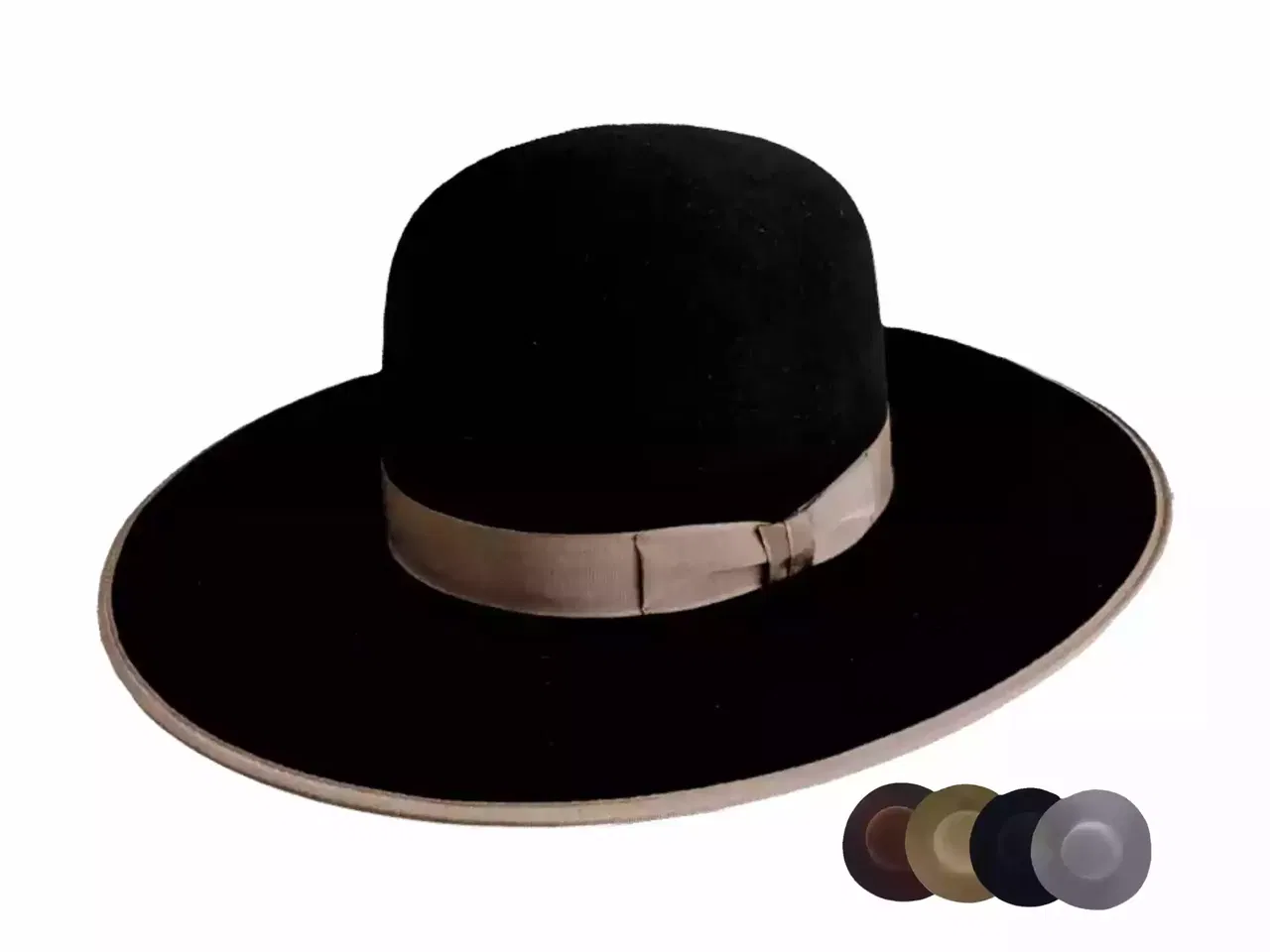 Der Open Crown – Old West Filzhut ist ein Meisterwerk der Ausdrucksstärke. Mit seiner imposanten Kopfhöhe von 13.5 cm und der offenen, ungebrochenen Krone verkörpert dieser Hut Authentizität und Freiheit wie kaum ein anderes Modell. Die extrem breite Krempe (10.5 cm) sowie das edle Rebsband verleihen ihm eine kraftvolle Präsenz – perfekt für Modeindividualisten, Kulturliebhaber und Western-Enthusiasten.