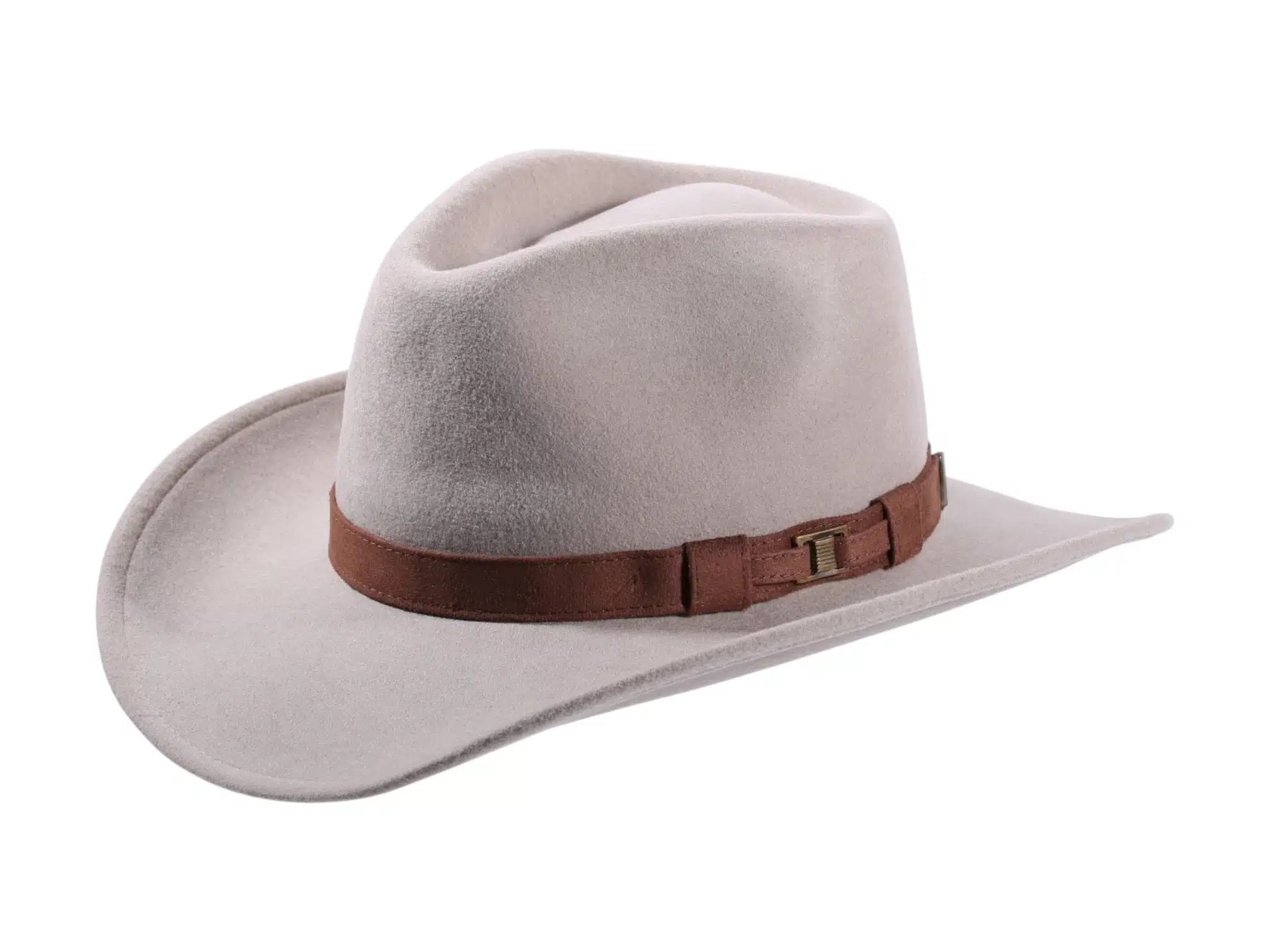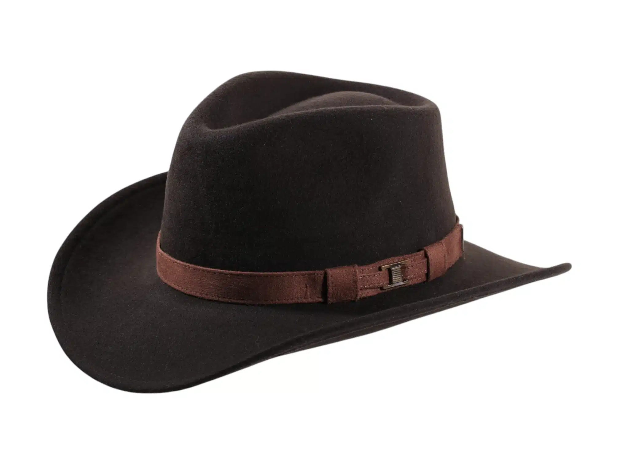 Der Outdoorhut Classic wird aus 100% hochwertigem Wollfilz gefertigt und in einem traditionellen italienischen Handwerksbetrieb für die Risa Hutwerkstatt hergestellt. Mit einer beeindruckenden Kopfhöhe von 12.5 cm und einer Randbreite von 8-8.5 cm bietet er nicht nur optimalen Schutz, sondern auch eine markante Silhouette. Das hellbraune Lederband mit stilvollen Messingschnallen verleiht dem Hut eine besondere Note und betont seinen Abenteuer-Charakter. Ein eingenähtes Textil-Schweißband sorgt für Komfort, auch bei längerem Tragen. Der Hut ist in den Farben Hellbeige, Schwarz und Braun erhältlich und wird in limitierter Auflage produziert, was seine Exklusivität unterstreicht.
