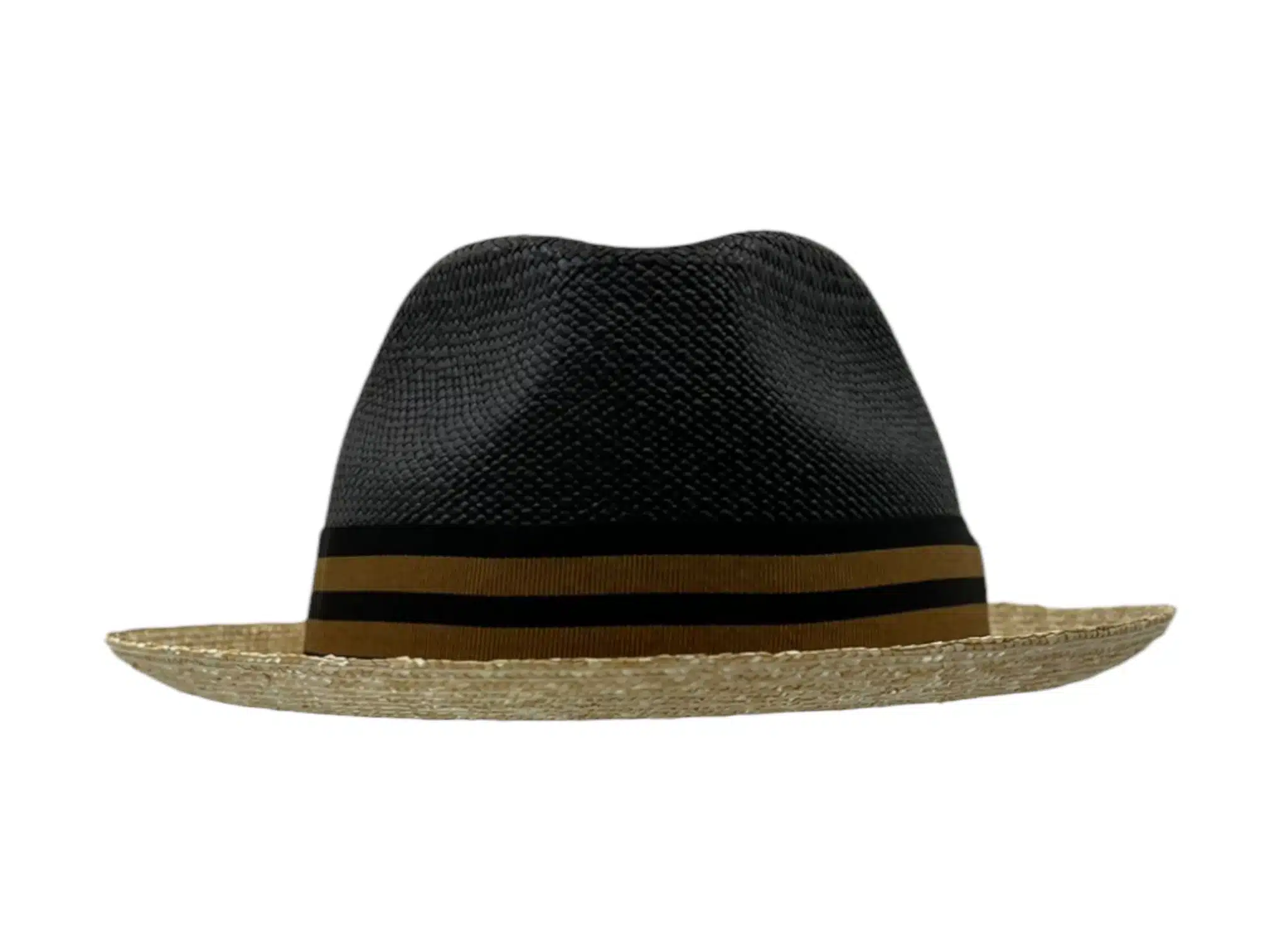 Entdecken Sie den einzigartigen Charme des Stroh/Panama Trilby „Freiamt Fi-Göler“ – ein Hut, der Tradition, Handwerkskunst und avantgardistisches Design perfekt vereint. Mit seiner raffinierten Farbkombination aus schwarzer Krone, naturfarbener Krempe und dem markanten gestreiften Hutband in Schwarz-Gold wird dieser Hut zum unübersehbaren Blickfang. Ob in der Stadt, auf Reisen oder bei sommerlichen Events – dieser Trilby verleiht jedem Outfit eine Prise Exklusivität und Eleganz.