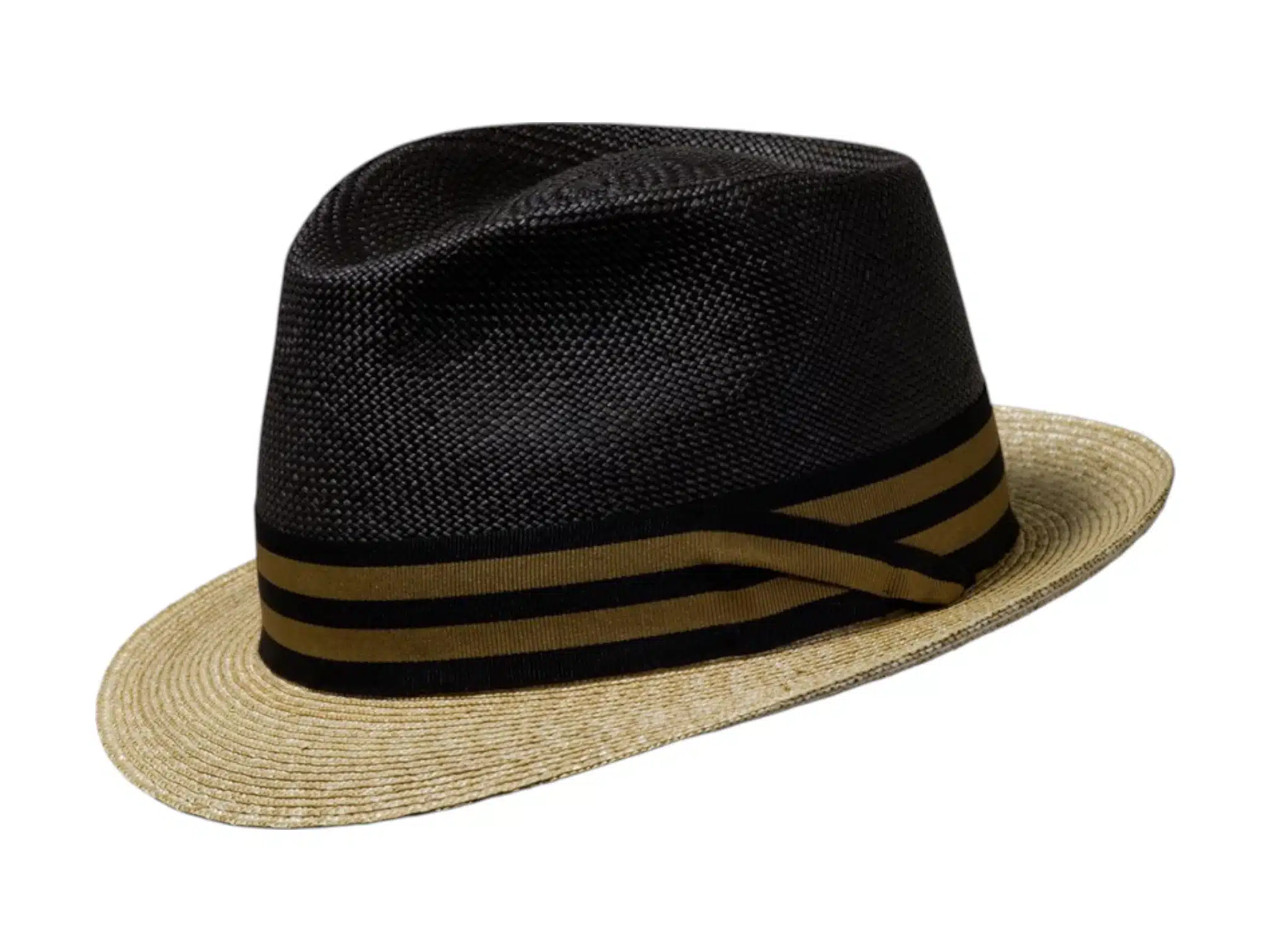 Die Kombination von schwarz geflochtener Krone und naturfarbener Krempe macht diesen Hut einzigartig. Das fein gearbeitete Flechtwerk und das detailreiche Hutband setzen modische Akzente. Jedes Modell wird mit größter Präzision in der Schweizer Hutmanufaktur gefertigt, sodass ein langlebiges Accessoire entsteht.