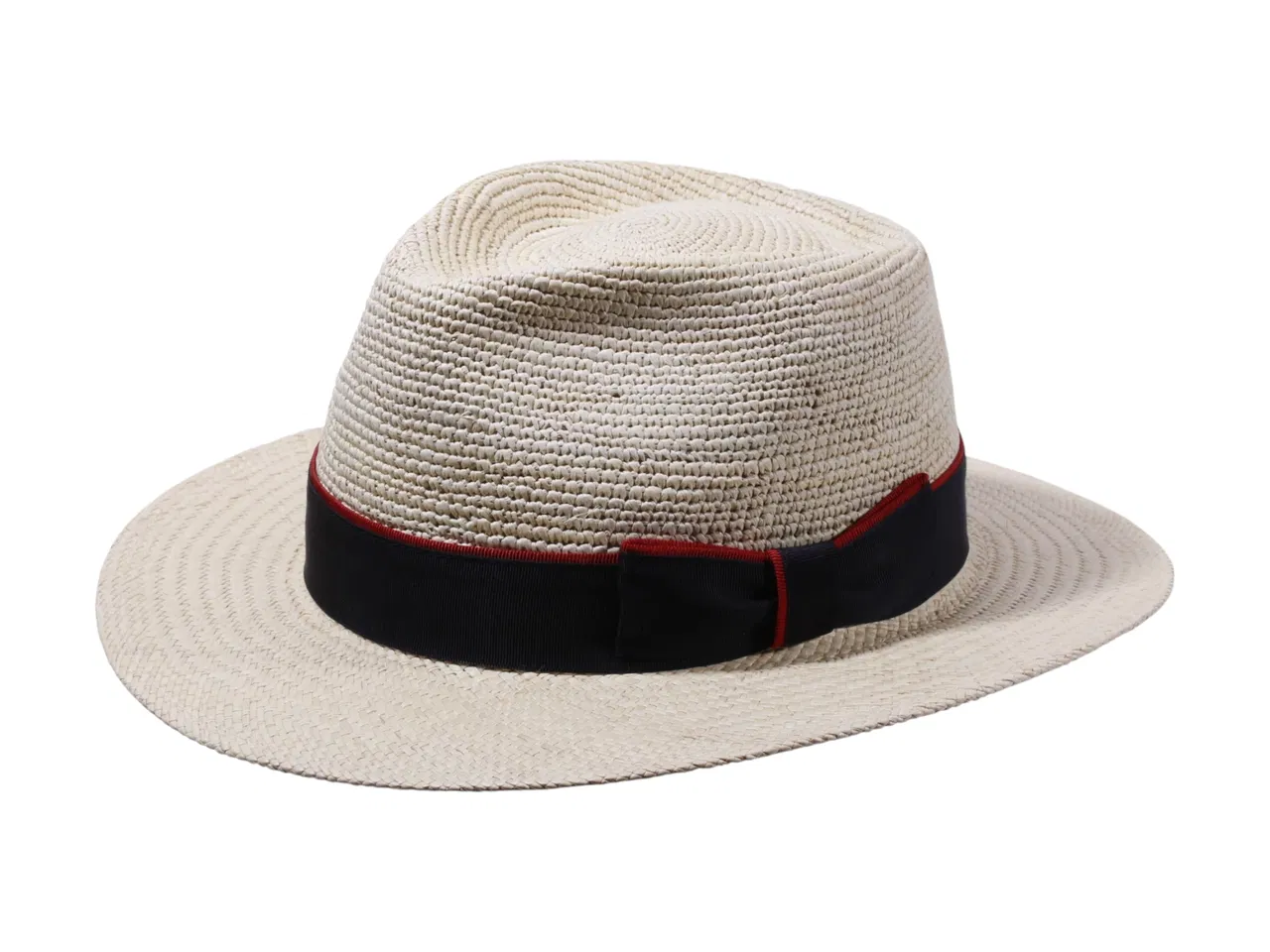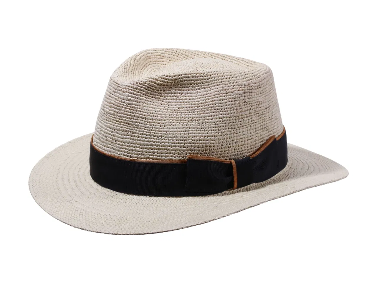 Dieser Fedora-Hut überzeugt durch seine klassische, leicht spitz zulaufende Krone und die sanft geschwungene Krempe. Das verwendete Toquilla-Stroh sorgt nicht nur für hohe Flexibilität und Leichtigkeit, sondern verleiht dem Hut auch seine charakteristische Textur. Besonders hervorzuheben: das Hutband aus edlem Rebs mit breiter Masche, das je nach Variante mit einem schwarzen, marineblauen oder braunen Akzentband abschliesst. Ein Must-have für stilbewusste Sommer-Outfits.