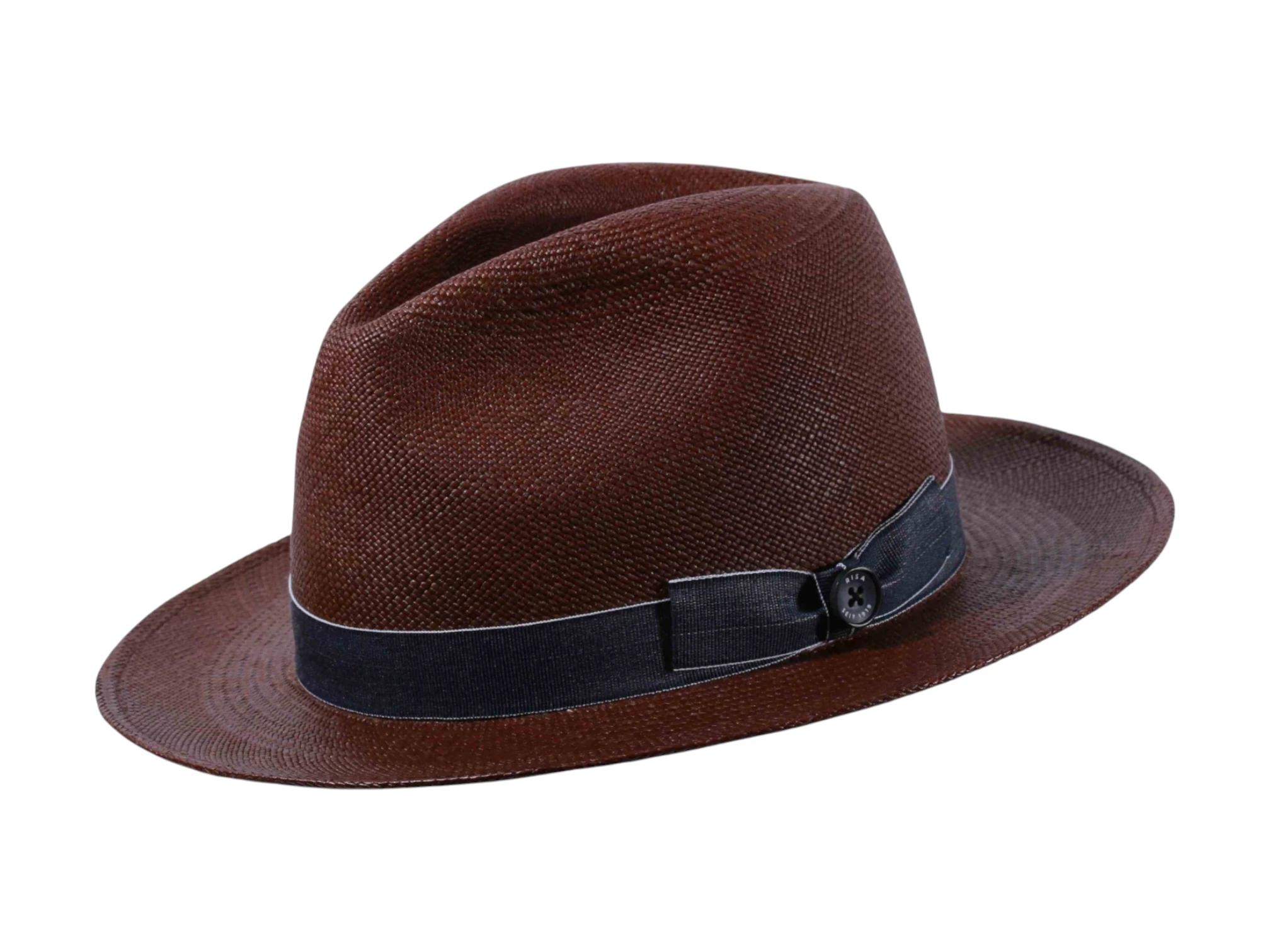 Geflochten aus 100 % originalem Panama-Stroh im hochwertigen Brisa-Flechtgrad #6, begeistert dieses Modell durch seine Leichtigkeit und natürliche Ausstrahlung. Mit einer Krempenbreite von 7 cm und einer Kopfhöhe von 11 cm schützt der Hut zuverlässig vor Sonne, während er luftig und komfortabel sitzt – auch bei hohen Temperaturen. Die Garnitur aus edlem Rebsband in Jeansblau unterstreicht die Individualität dieses Modells und wird von einem charaktervollen Knopf mit Risa-Prägung veredelt.