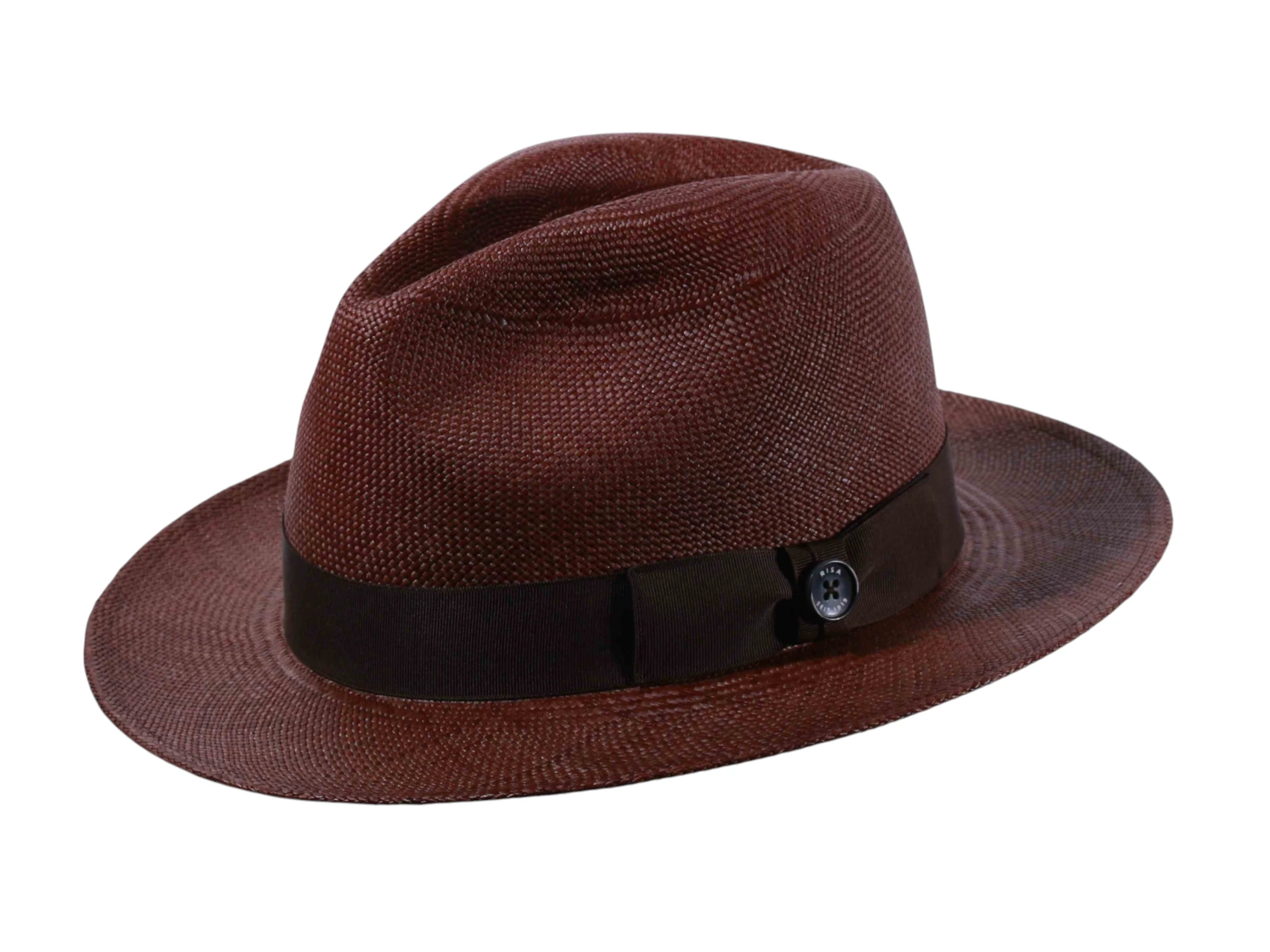 Die charakteristische Brisa-Flechtung verleiht dem Hut eine geschlossene, edle Textur, die besonders leicht auf dem Kopf liegt. Die dezente Garnitur und das fließende Formenspiel machen diesen Fedora zu einem modernen Klassiker für jeden Anlass.