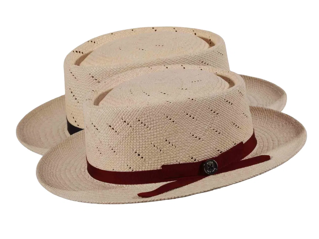 Dieser exklusive Spanier Style Hut aus 100% echtem Panamastroh überzeugt mit seiner symmetrischen Silhouette, die durch die mittelhohe Krone (9.5 cm) und den ausgewogenen 6 cm breiten Rand geprägt ist. Durch das dezente Ventilationsmuster wird der Klassiker funktional aufgewertet: Für eine angenehme Luftzirkulation – auch an heissen Tagen. Zwei edle Farbvarianten stehen zur Wahl: Natur mit burgunderrotem Hutband oder Natur mit marineblauem Rebsband. Beide Garnituren sind mit einer feinen Masche und dem ikonischen „Risa seit 1919“-Knopf versehen – ein Zeichen höchster Schweizer Handwerkskunst.