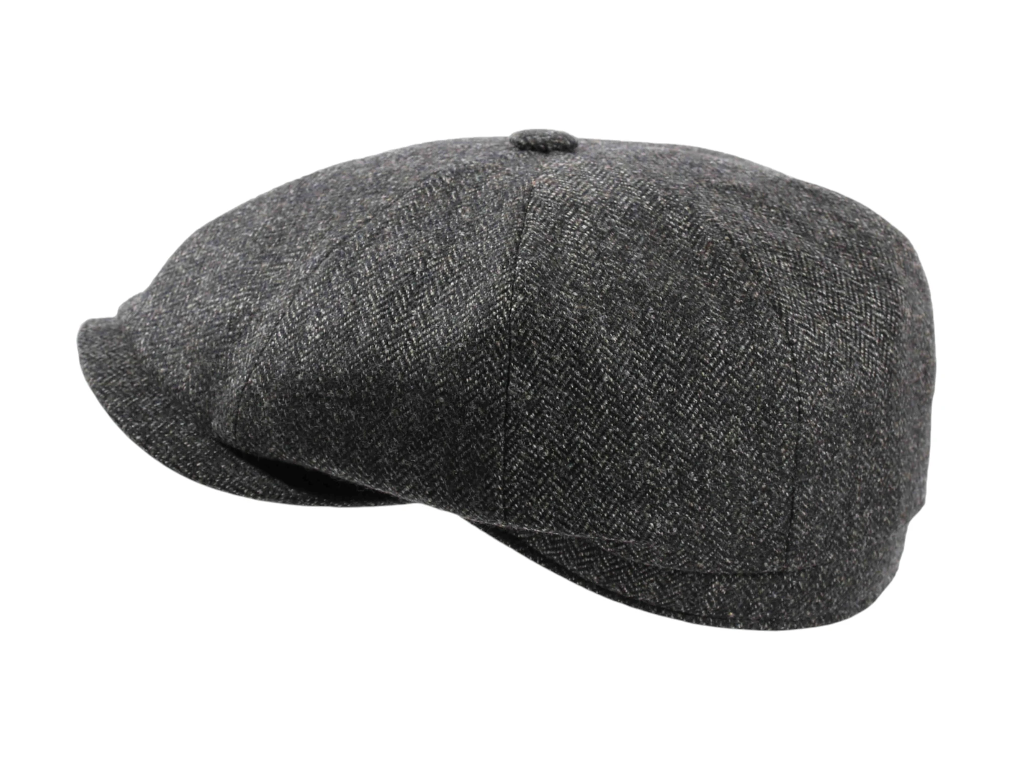 Die Paperboy-Mütze „Herringbone“ verkörpert authentischen Vintage-Stil mit einer klaren modischen Note. Der großzügige Schnitt mit Knopfkrone, der markante Schirm und das elegante Fischgrätmuster machen sie zu einem Klassiker für Liebhaber traditioneller Kopfbedeckungen.