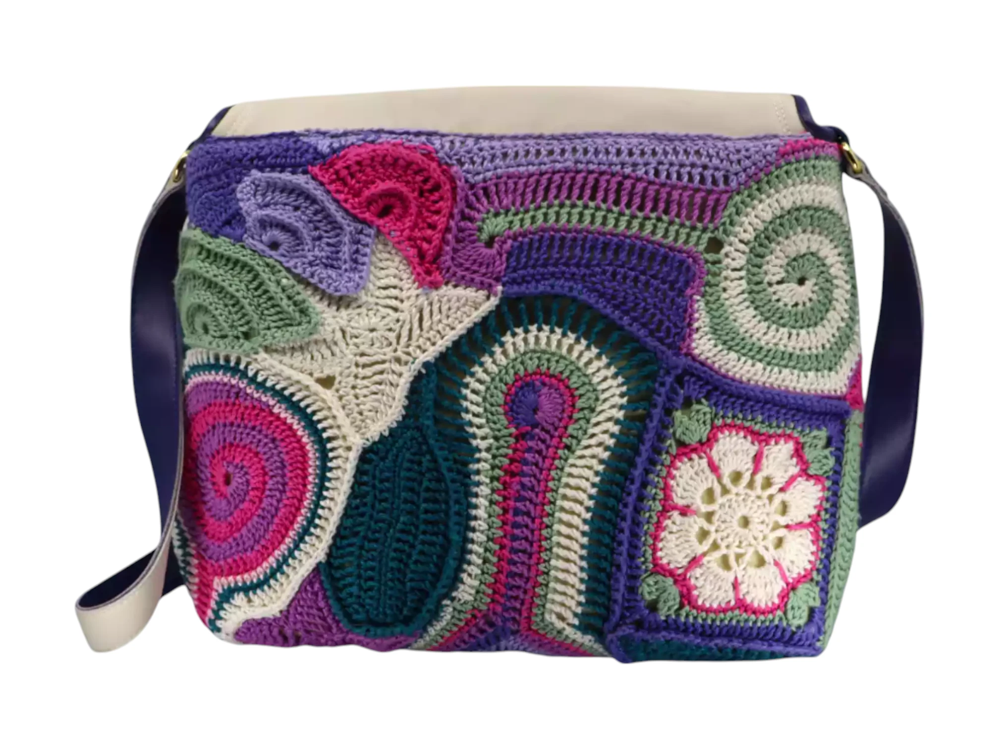 Multicolor Schultertasche aus Garnwolle und Lederdetails, ideal für modebewusste Frauen, die Qualität und Design schätzen.