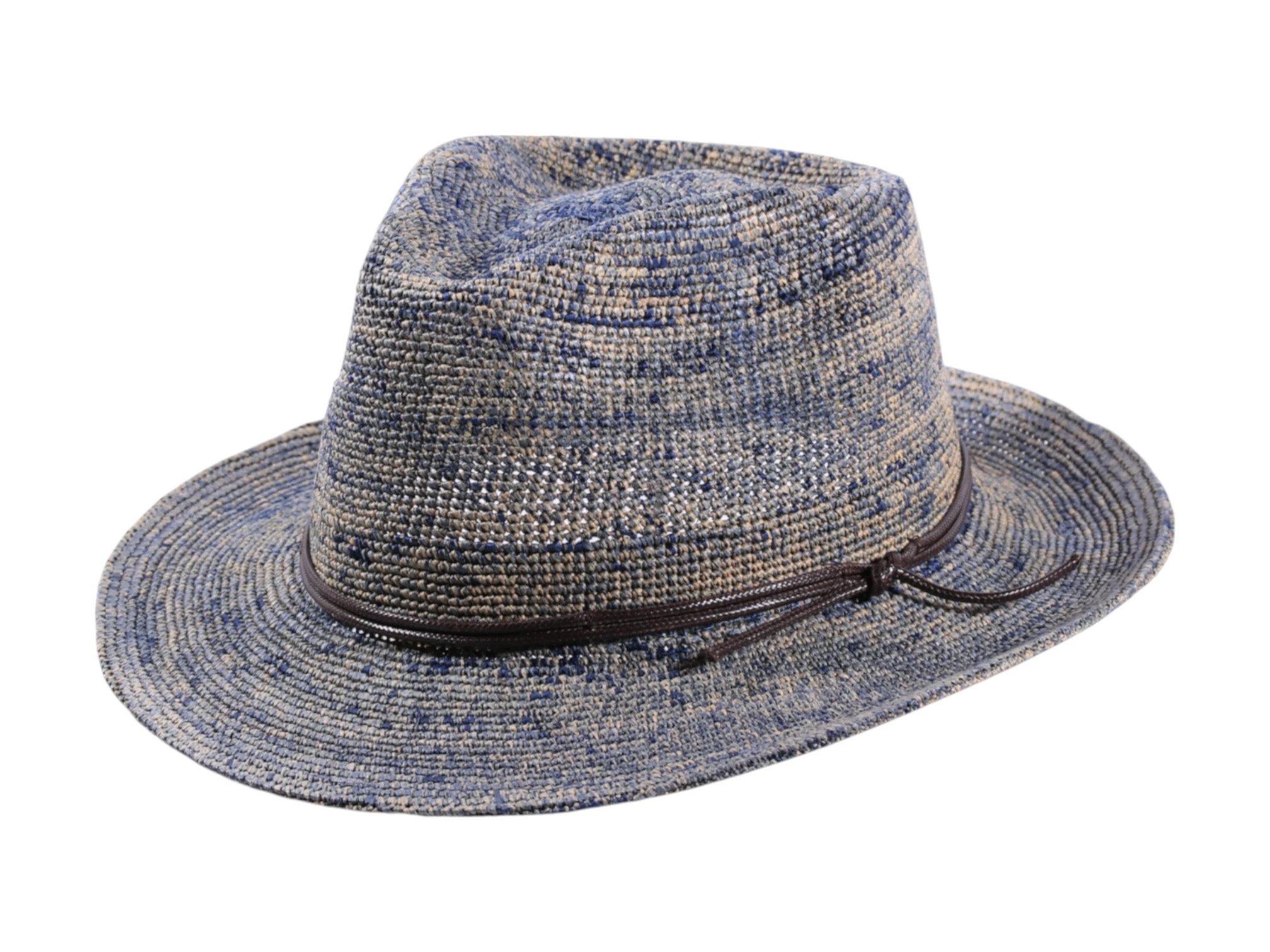 Dieser sommerliche Fedora-Hut besticht durch seine lässige Eleganz und das aufwendig gearbeitete Raffia-Häkelmuster. Die klassische Form mit einer mittleren Krempenbreite und der stilvollen Krone wird durch das edle Hutband aus brauner Lederschnur besonders hervorgehoben. Ein echter Hingucker, der nachhaltigen Lifestyle und modische Individualität gekonnt vereint.