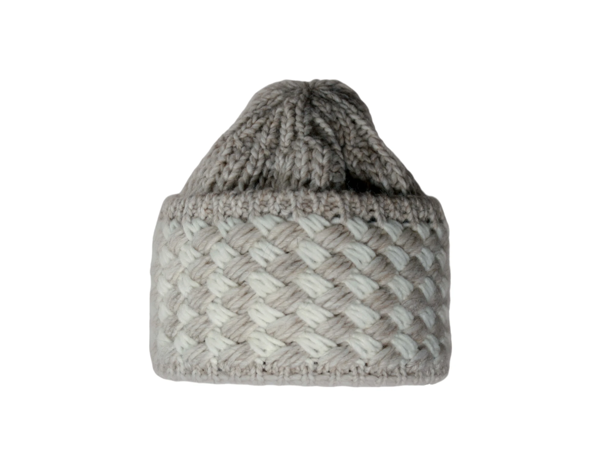 Design: Grobes Zopfmuster, breite umgeschlagene Krempe für zusätzlichen Schutz