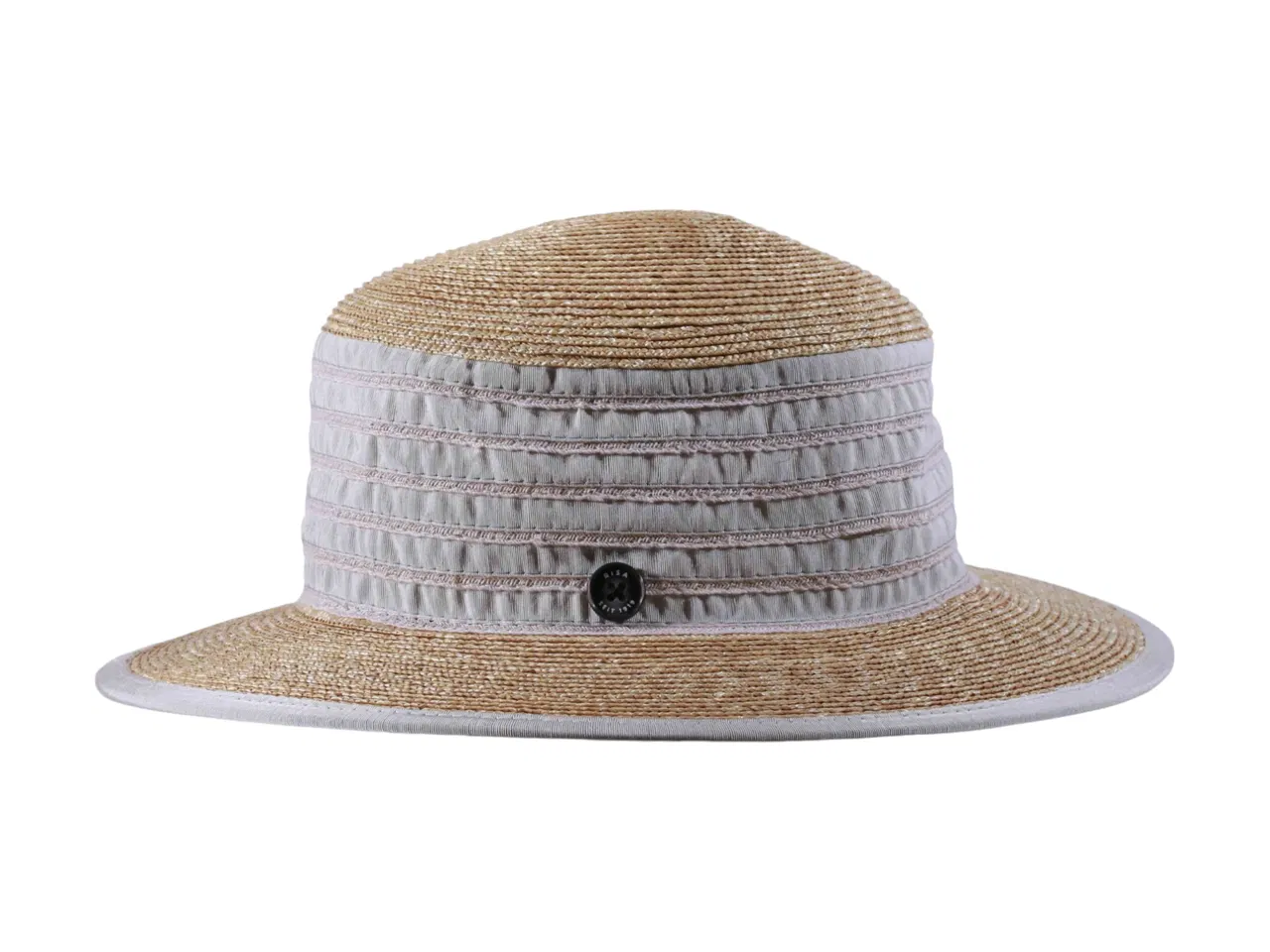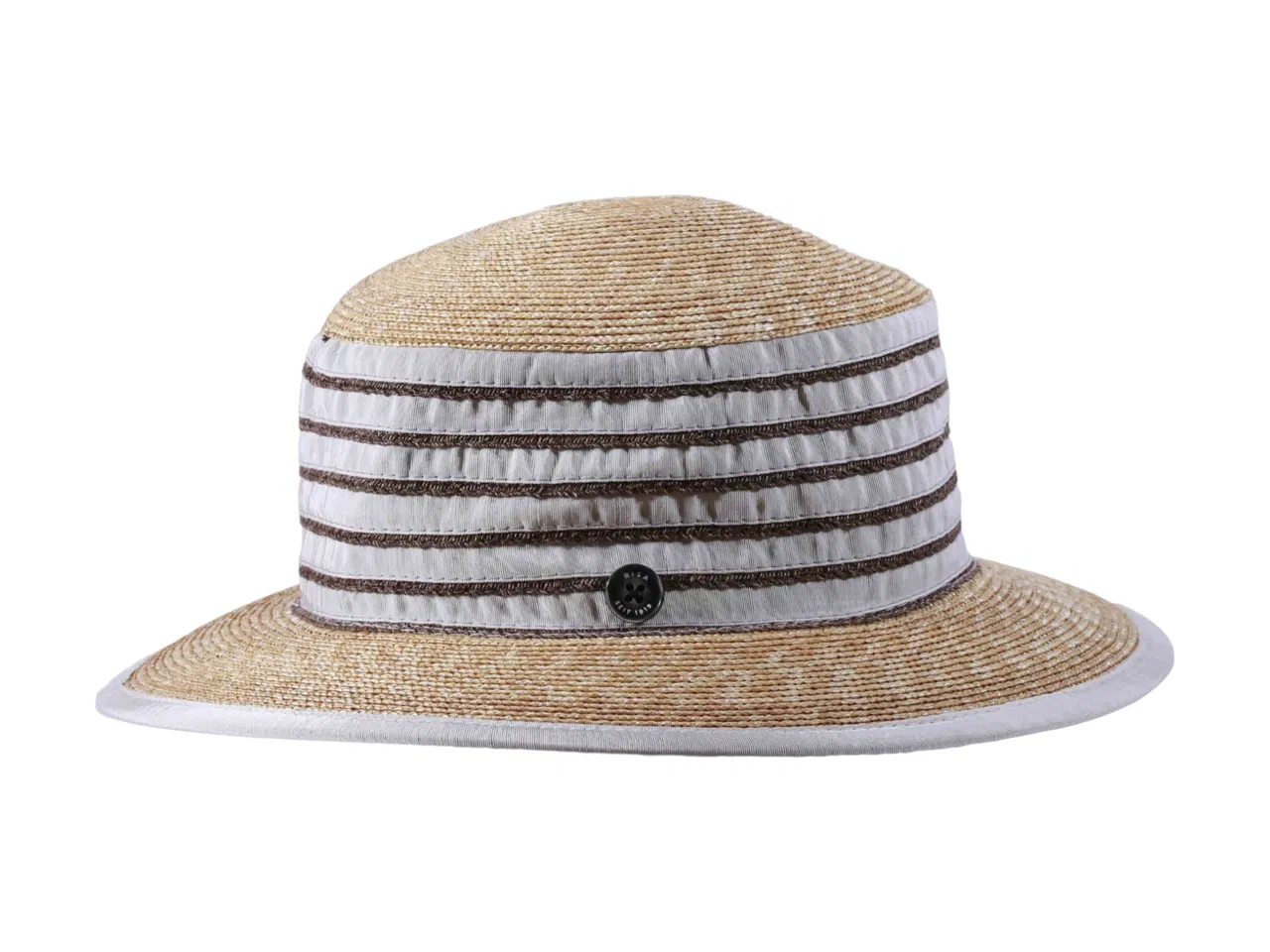 Ein besonderes Highlight: Der Hut lässt sich sanft zusammendrücken und ist somit der perfekte Reisebegleiter. Raffinierte Leinenbänder in abgestuften Farben – wahlweise in Vanille oder Braun – umspielen die Krone elegant, ergänzt durch den charakteristischen „RISA seit 1919“-Knopf.