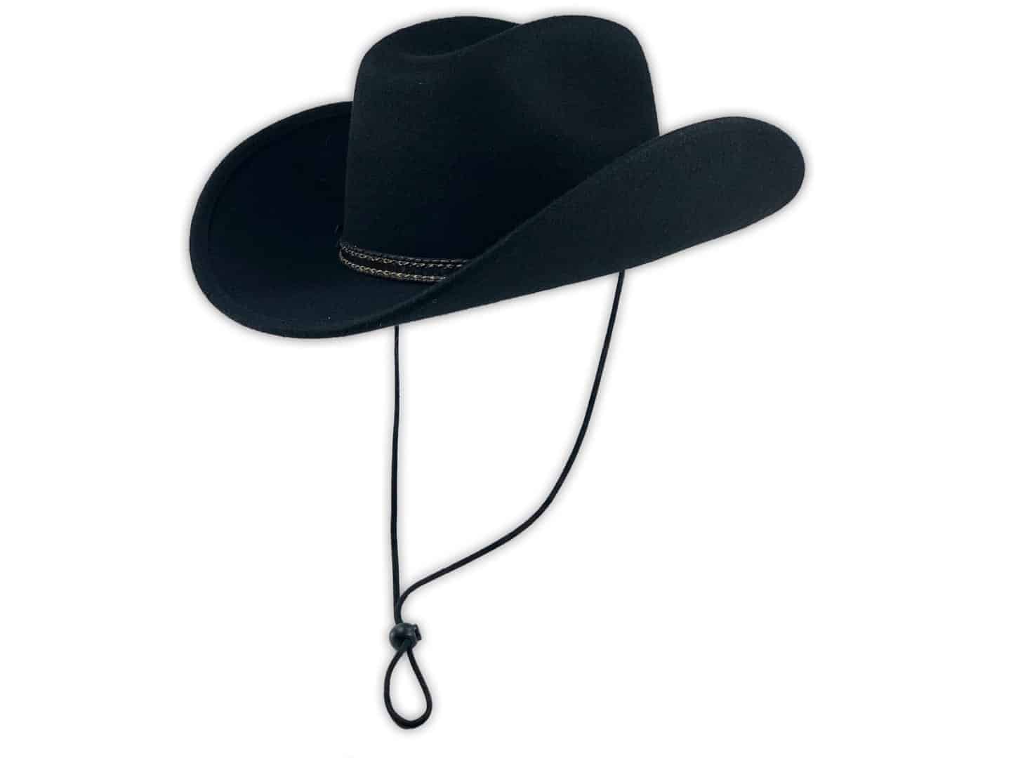 Das Sturmband aus schwarzer Baumwollkordel ist nicht nur ein stilvolles Accessoire, sondern auch eine praktische Lösung, um Ihrem Westernhut auch bei starkem Wind zusätzlichen Halt zu geben. Besonders bei Westernreitern ist das Kinnband, auch Sturmband oder Wildschur genannt, sehr beliebt. Mit dem Stopper lässt sich die Länge der Kordel individuell anpassen, damit der Hut auch bei wilden Ritten sicher auf dem Kopf bleibt.