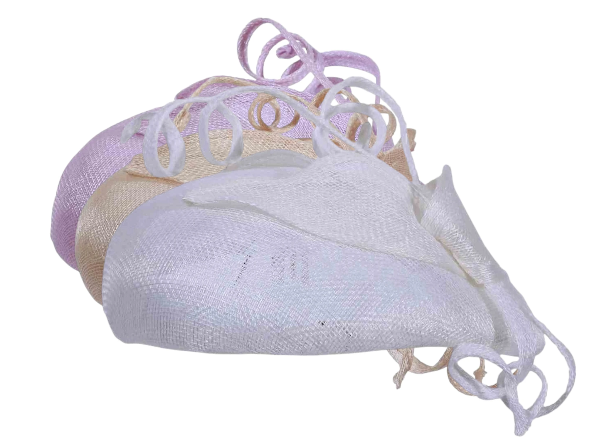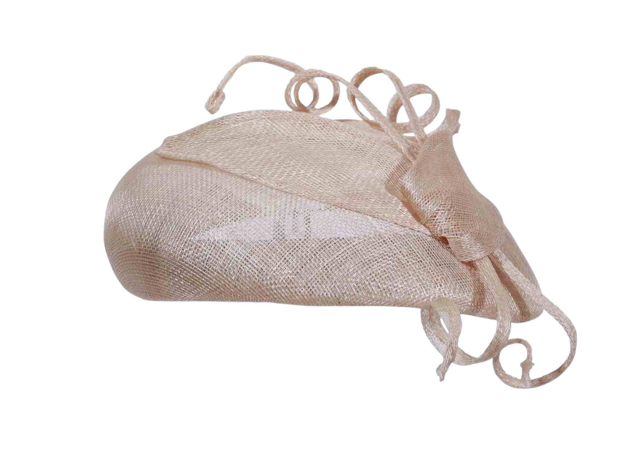 Dieser stilvolle Kopfschmuck beeindruckt durch seine reduzierte, aber wirkungsvolle Form: eine leicht gewölbte Basis, darauf dekorative Elemente wie geschwungene Sisalbänder, die dem Modell eine florale Leichtigkeit verleihen. Ob in klassischem Weiss, zartem Hellbeige oder romantischem Mittelrosa – dieser Toque sorgt für Aufsehen ohne aufdringlich zu wirken.