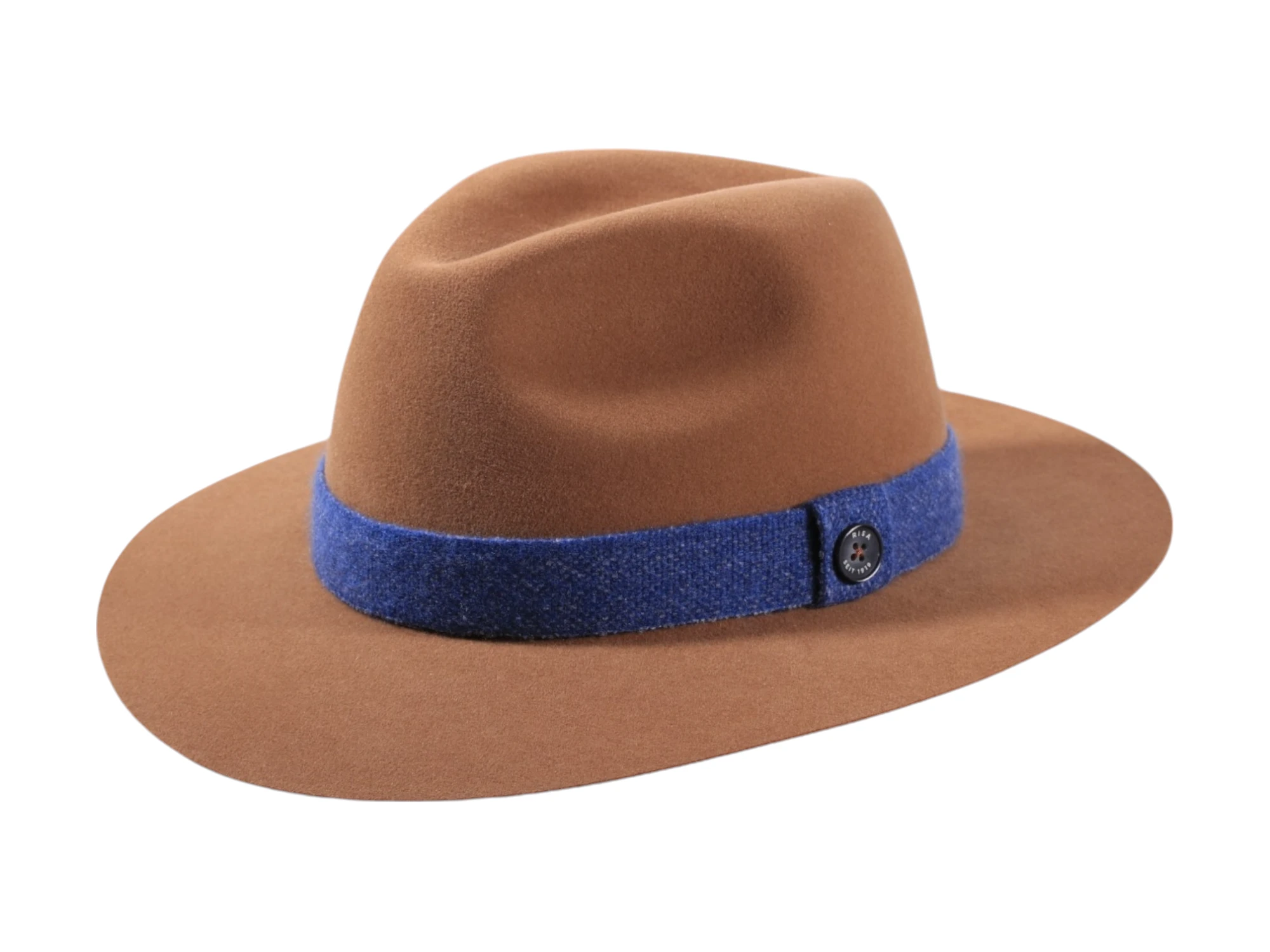 Kann der Hut auf Reisen getragen werden? Ja, der stabile Veloursfilz macht ihn zu einem robusten Reisebegleiter.