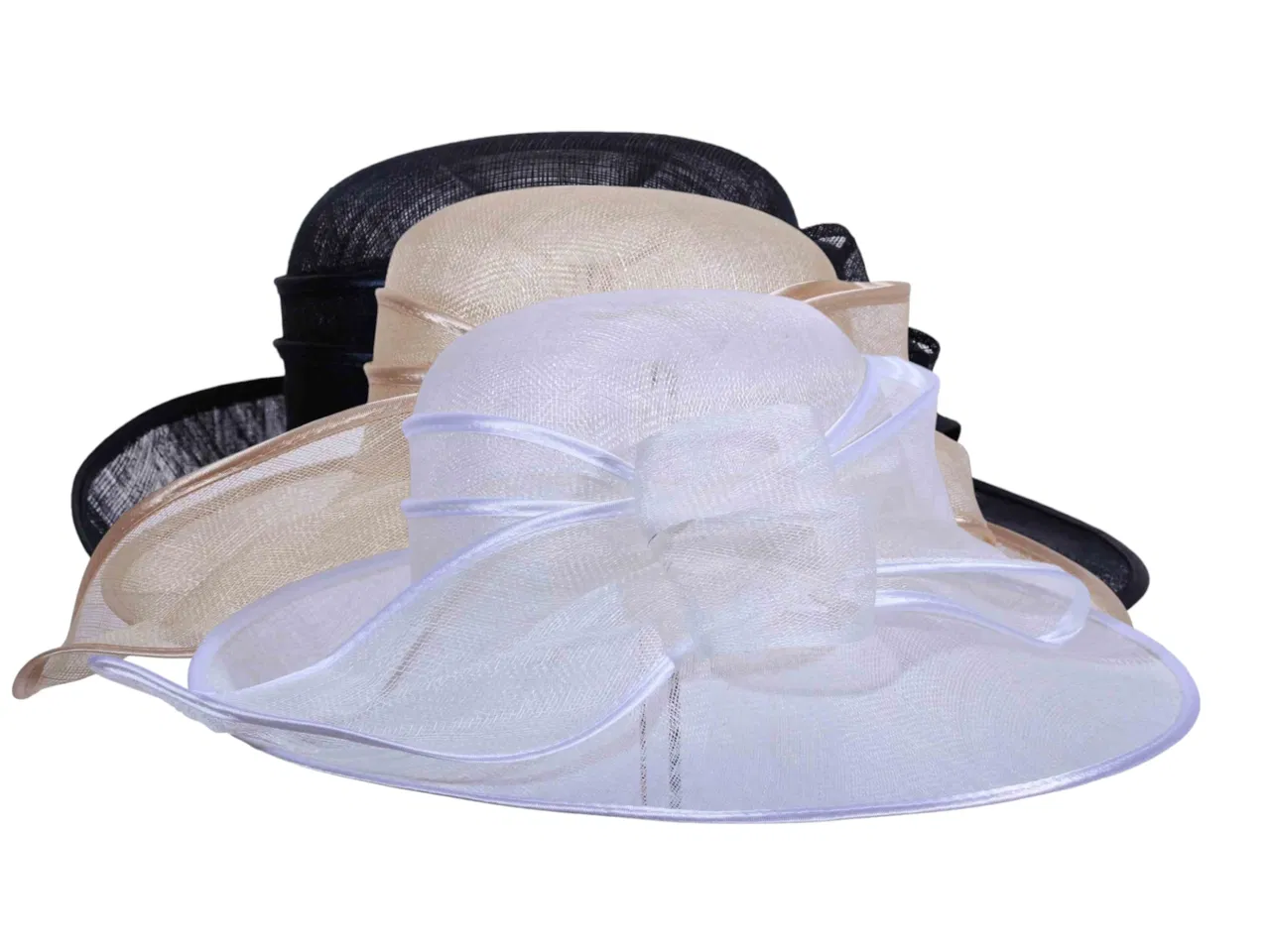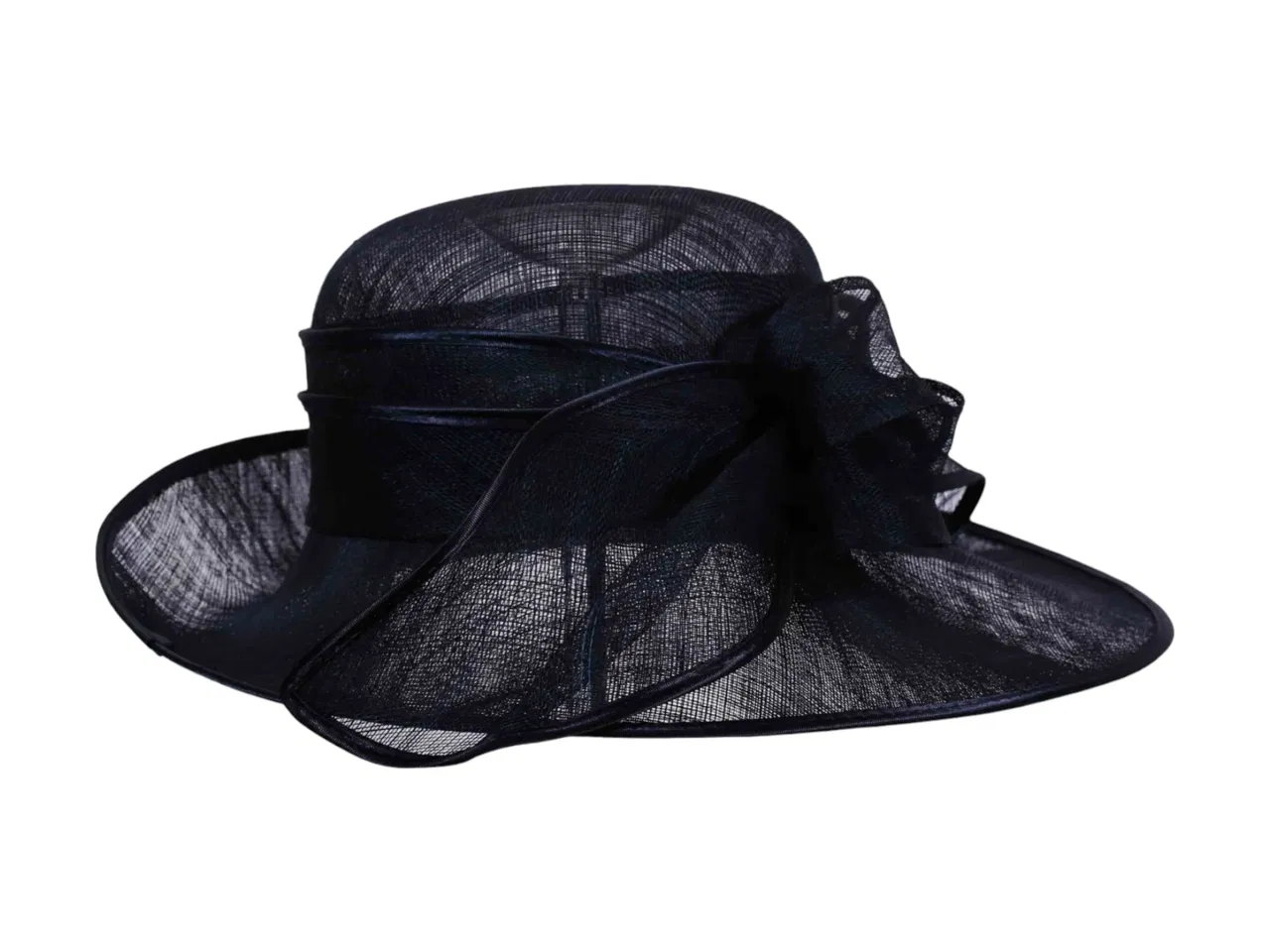 Lassen Sie sich von der luftigen Anmut dieses breitrandigen Anlasshutes verzaubern! Gefertigt aus hochwertigem Sisal, besticht dieser Hut durch seine feine Transparenz, die nicht nur visuell beeindruckt, sondern auch für ein angenehm leichtes Tragegefühl sorgt. Die kunstvoll geformte Sisal-Schlaufe verleiht dem Design eine subtile Verspieltheit und sorgt für einen edlen, femininen Look.