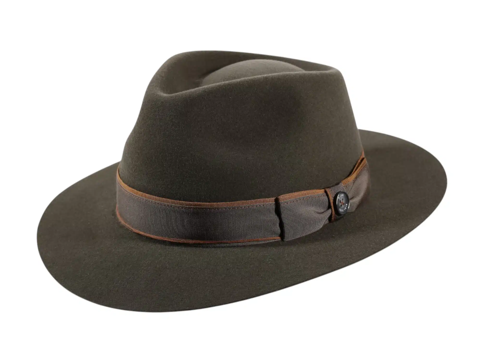 Aus 100% hochwertigem Haarfilz gefertigt, überzeugt dieses Modell durch seine exzellente Formstabilität, luxuriöse Haptik und Langlebigkeit. Mit einer Randbreite von 6.5 cm und einer Kopfhöhe von 10.5 cm bietet er die ideale Balance aus Eleganz und Schutz.