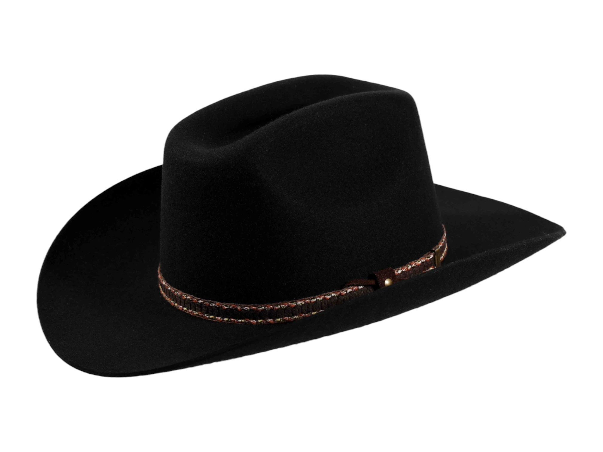 Die ausgeprägte Krone und die markante Krempenlinie verleihen dem „Desperado“ seine klassische Western-Dramaturgie. Das Echtlederhutband in Kombination mit dem tiefschwarzen Filz unterstreicht den kernigen, edlen Look. Ideal für den professionellen Auftritt – auf dem Pferd oder der Bühne.