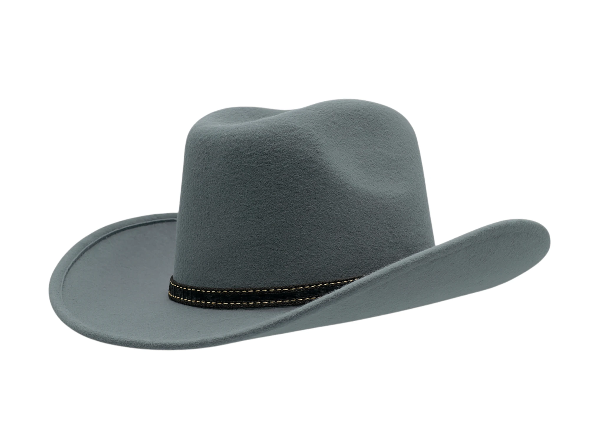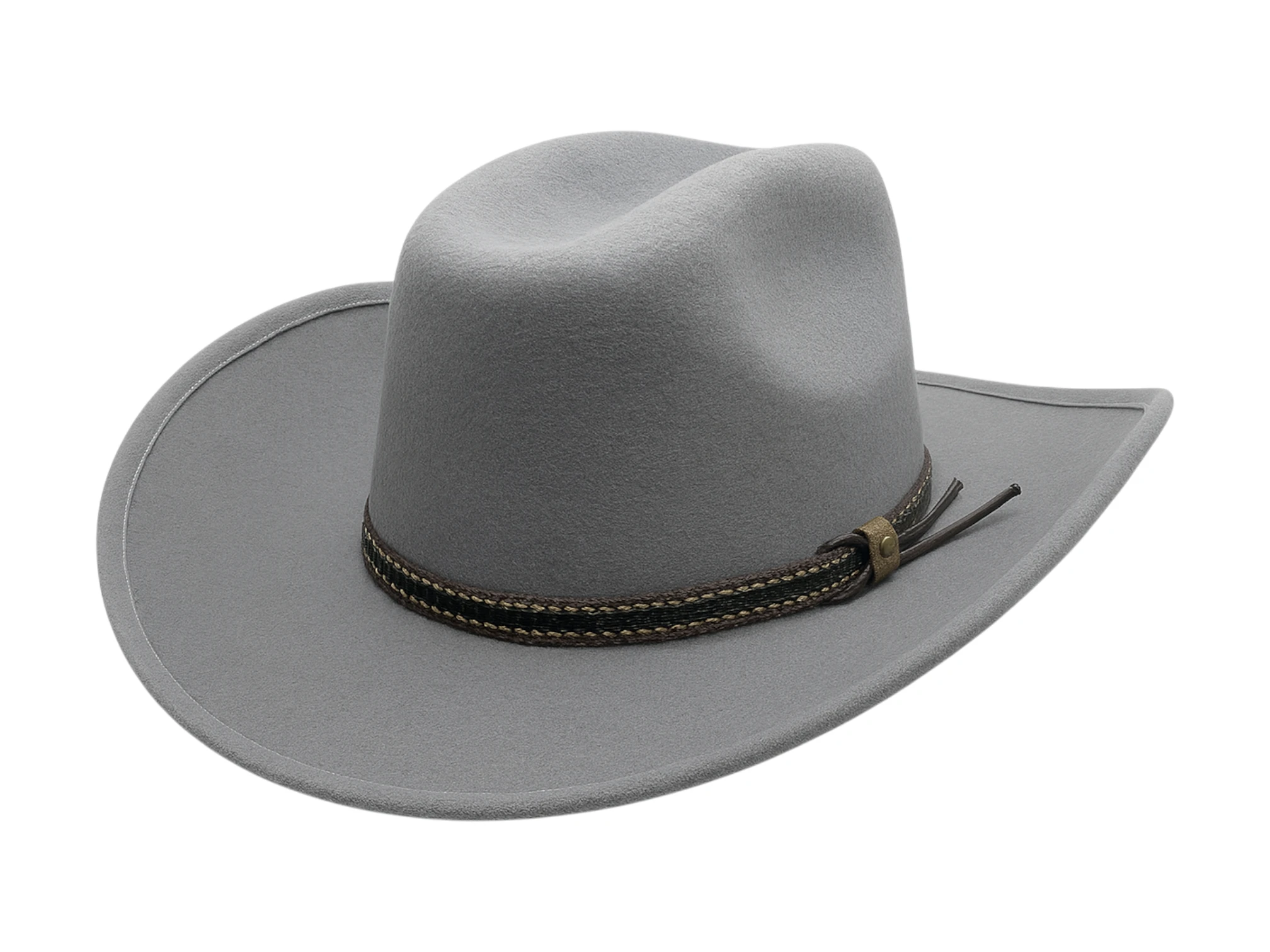 Mit dem steingrauem Westernhut Montana sind Sie auf alle Wetterlagen und jede Jahreszeit vorbereitet. Dieser Hut vereint traditionelle Western-Ästhetik mit moderner Funktionalität und ist aus hochwertigem, wasserabweisend behandeltem Filz gefertigt, der Wind, Regen und sogar Schnee trotzt. Die breite Krempe ist vorne und hinten gleichmäßig gerundet und durch eine Bridée verstärkt – eine spezielle Verarbeitungstechnik, bei der der Rand nach oben umgenäht ist. Dies sorgt nicht nur für eine stilvolle Formgebung, sondern verhindert auch, dass Regenwasser ins Gesicht oder in den Nacken läuft. Der Westernhut in der klassischen Montana Hutform ist mit einem eleganten Lederhutband verziert und wird in vier Farben angeboten. Das flexible Textilschweißband passt sich perfekt an die Kopfform an, was ihn ideal für Westernreiter macht. Optional kann der Hut mit einem luxuriösen Kalbslederschweißband in drei Farben oder mit einer besonders griffigen Wildschur bestellt werden, sodass er selbst bei actiongeladenen Aktivitäten fest sitzt und auch bei einem wilden Ritt nicht verloren geht. Handgefertigt in der Schweizer Hutmanufaktur, steht der Montana für traditionelle Handwerkskunst und Schweizer Qualität.
