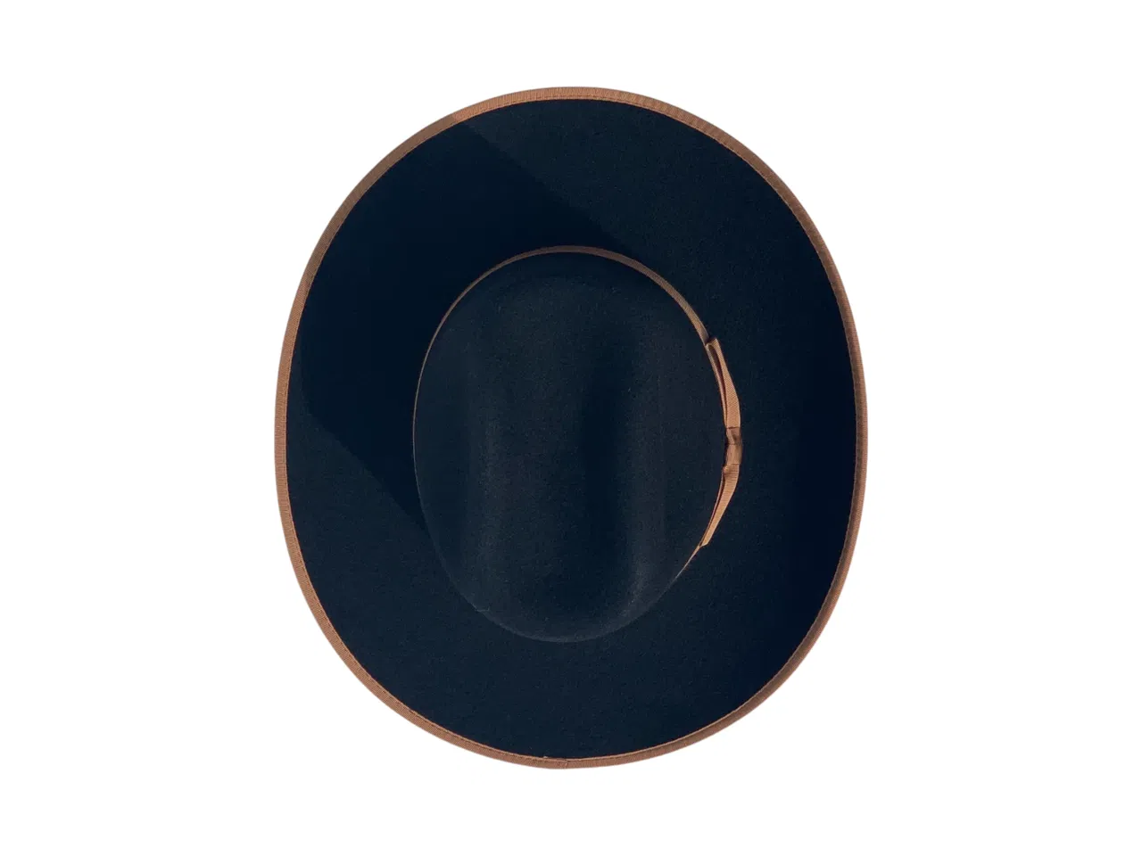 Der „Oklahoma“ besticht durch seine klare Linienführung, die klassische Westernkrone und die harmonisch proportionierte Krempe. Die feine Rebsbandgarnitur mit seitlicher Masche setzt elegante Akzente, während die hochwertige Krempeneinfassung für ein stimmiges Gesamtbild sorgt.