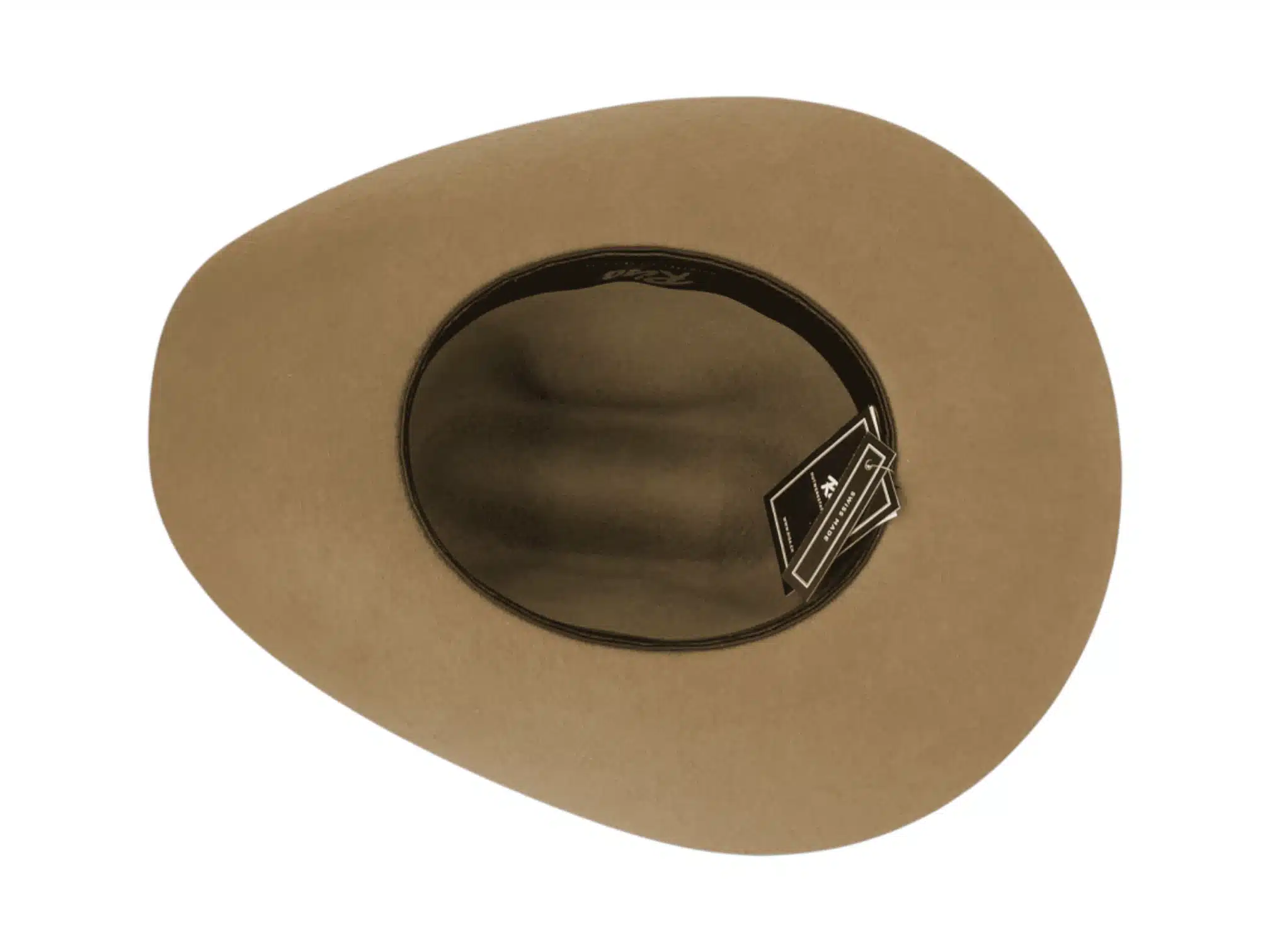 Der Westernhut Rodeo besticht durch seine außergewöhnliche Krempenform: Die leicht spitz zulaufende Frontpartie (Eierform) kombiniert mit dem exakt geschnittenen Rand und der mittelhohen Krone (ca. 8.5 cm) verleiht diesem Modell eine kraftvolle Ausstrahlung – inspiriert von Rodeo-Events und Reitsporttradition.