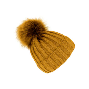 Strickmütze mit Kunstfellbommel uni