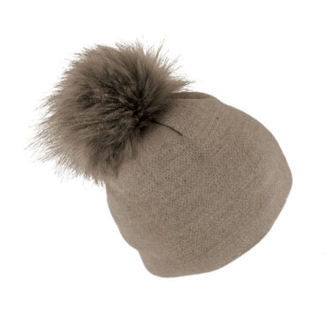 Strickmütze mit Kunstfellbommel uni